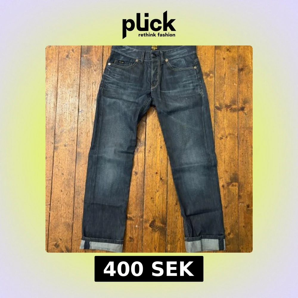 Säljer ett par mörkblå jeans från Replay i rak modell. Jeansen har klassisk femficksdesign, kontrastsömmar och uppvikta benslut. Tillverkade i 100% bomull för en skön känsla och snygg passform. Perfekta för dig som gillar stilrena och tidlösa jeans.