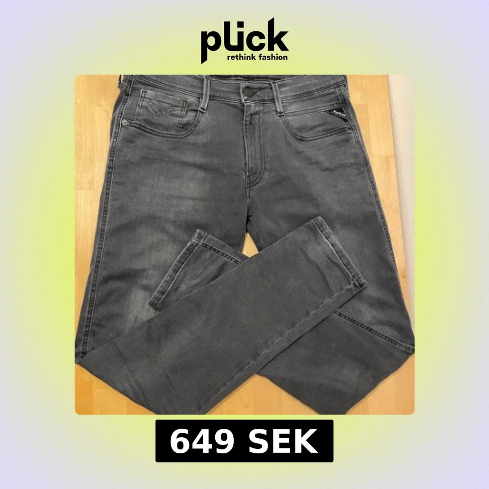 Säljer ett par mörkgrå jeansbyxor från Replay i modellen Anbass hyperflex. Byxorna är i storlek 34 32. Skick 9/10. Hör av er vid minsta fundering😊