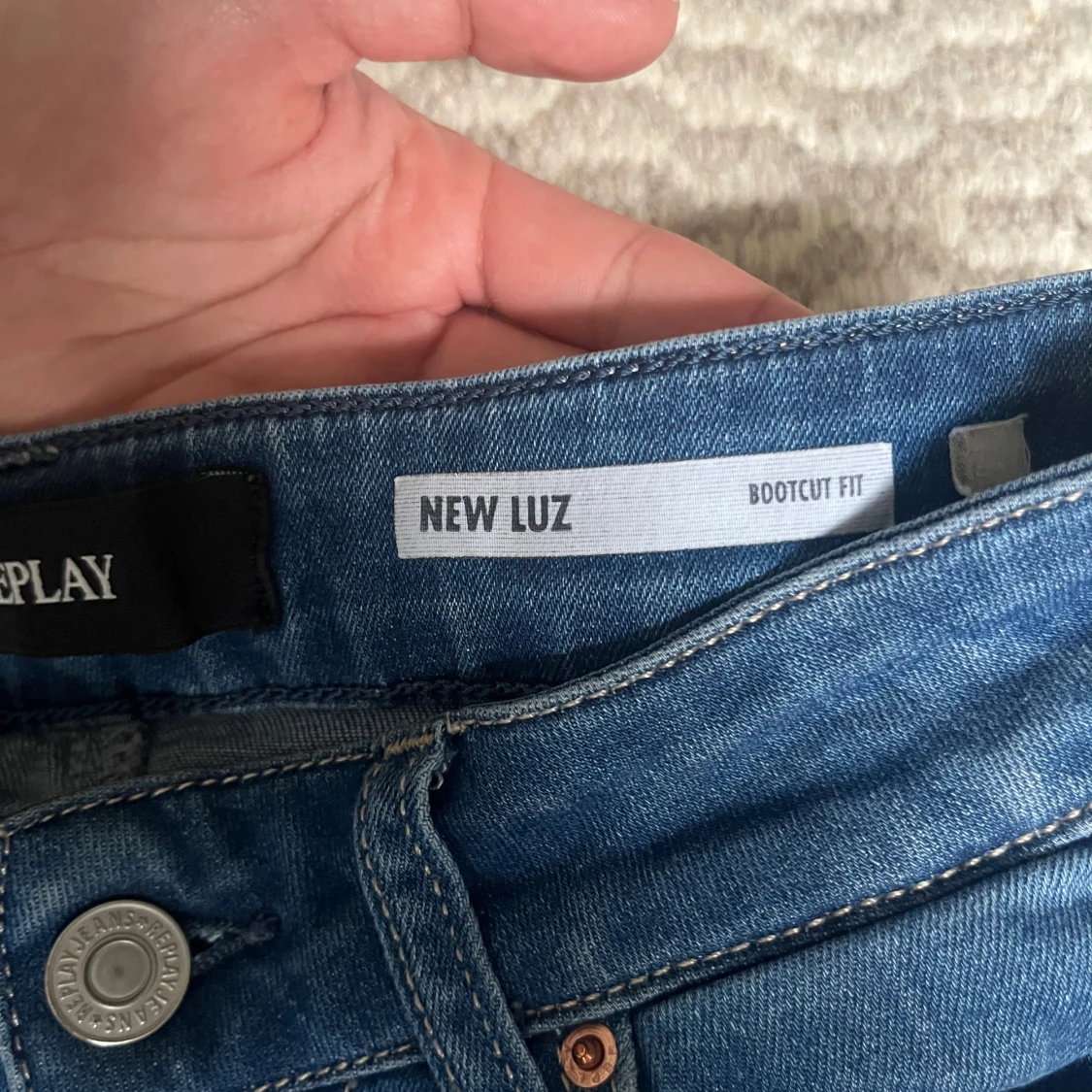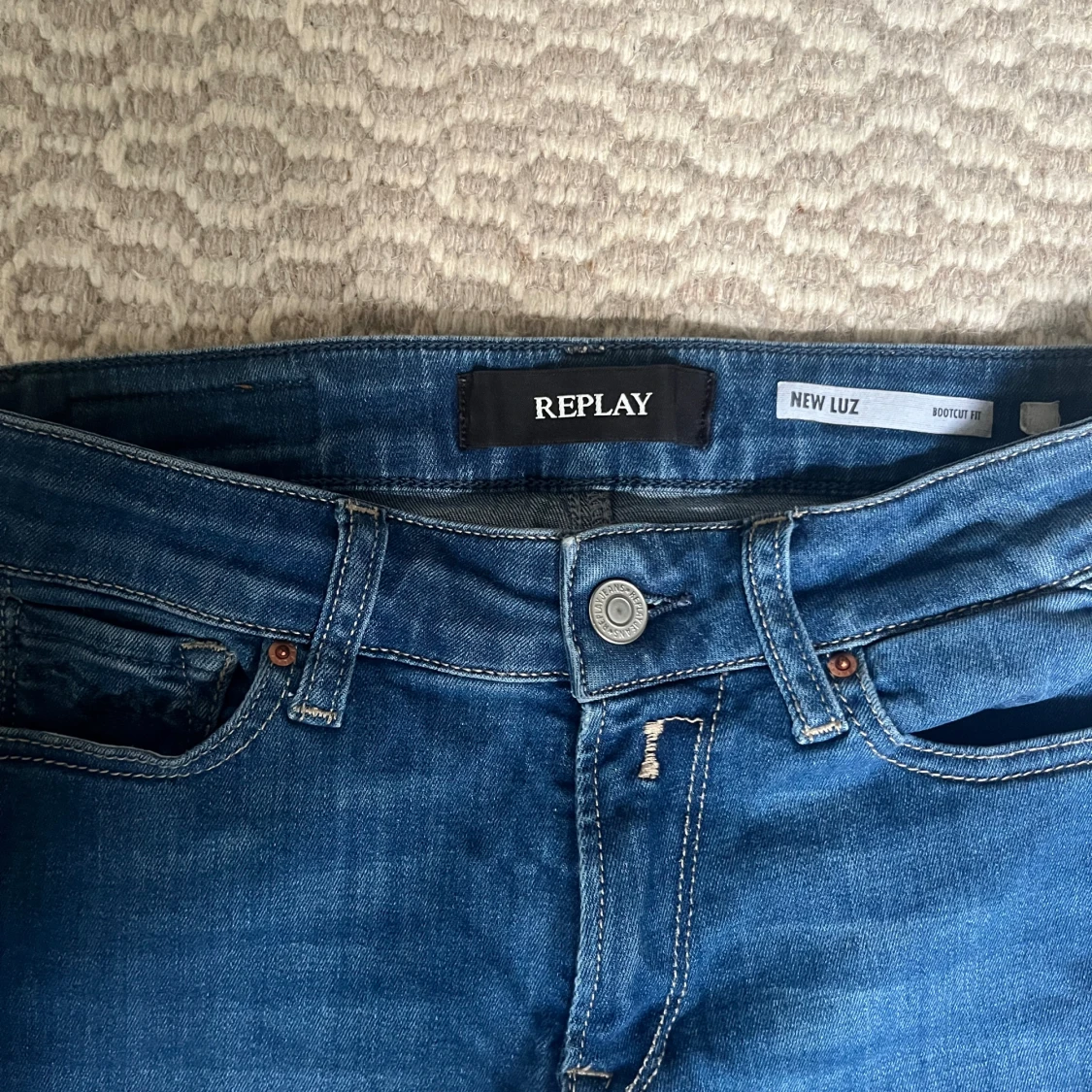 Snygga blå jeans från Replay, modell New Luz med bootcut passform. Klassisk femficksdesign, lågmidja och coola detaljer som kontrastsömmar. Perfekta för dig som gillar en tidlös och avslappnad look.
