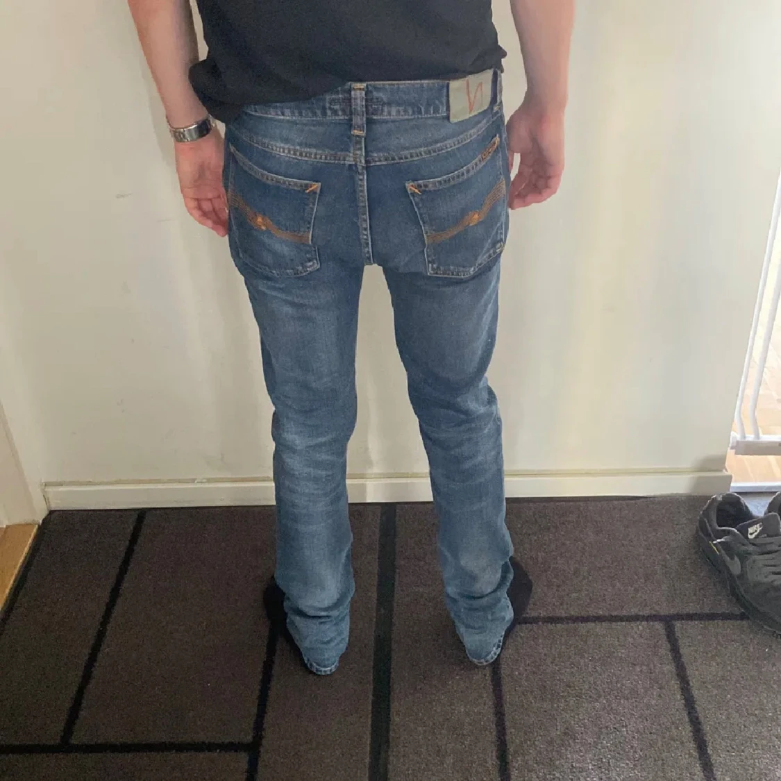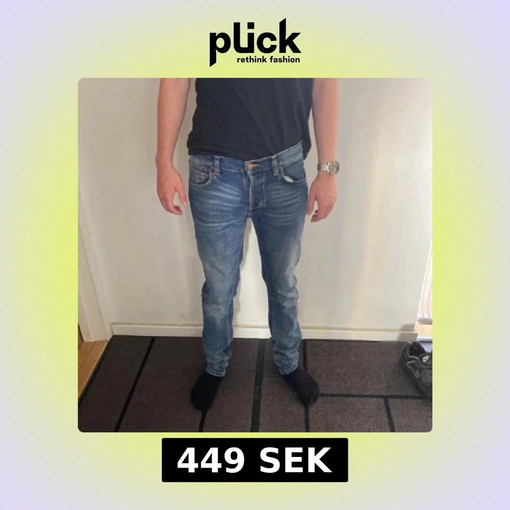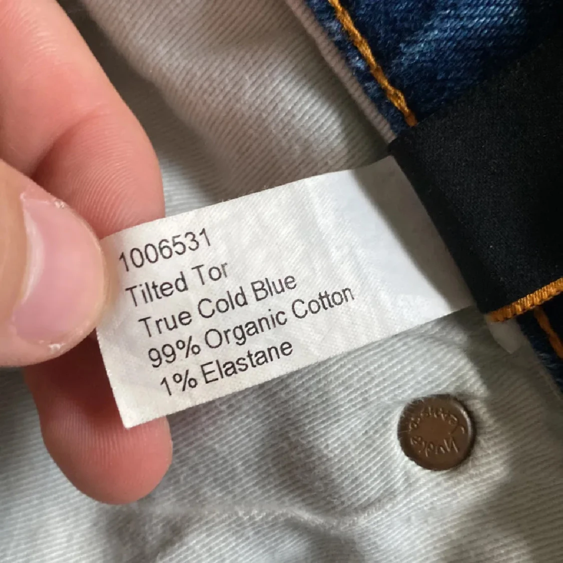 Säljer ett par Nudie Jeans Tilted Tor i färgen True Cold Blue. Jeansen är blå med snygga slitningar och klassiska orange sömmar. Modellen har normal passform och raka ben. Materialet är 99% ekologisk bomull och 1% elastan för lite stretch. Modellen är 178 cm lång och väger 63 kg. Det är bara att höra av sig vid frågor och funderingar 😀