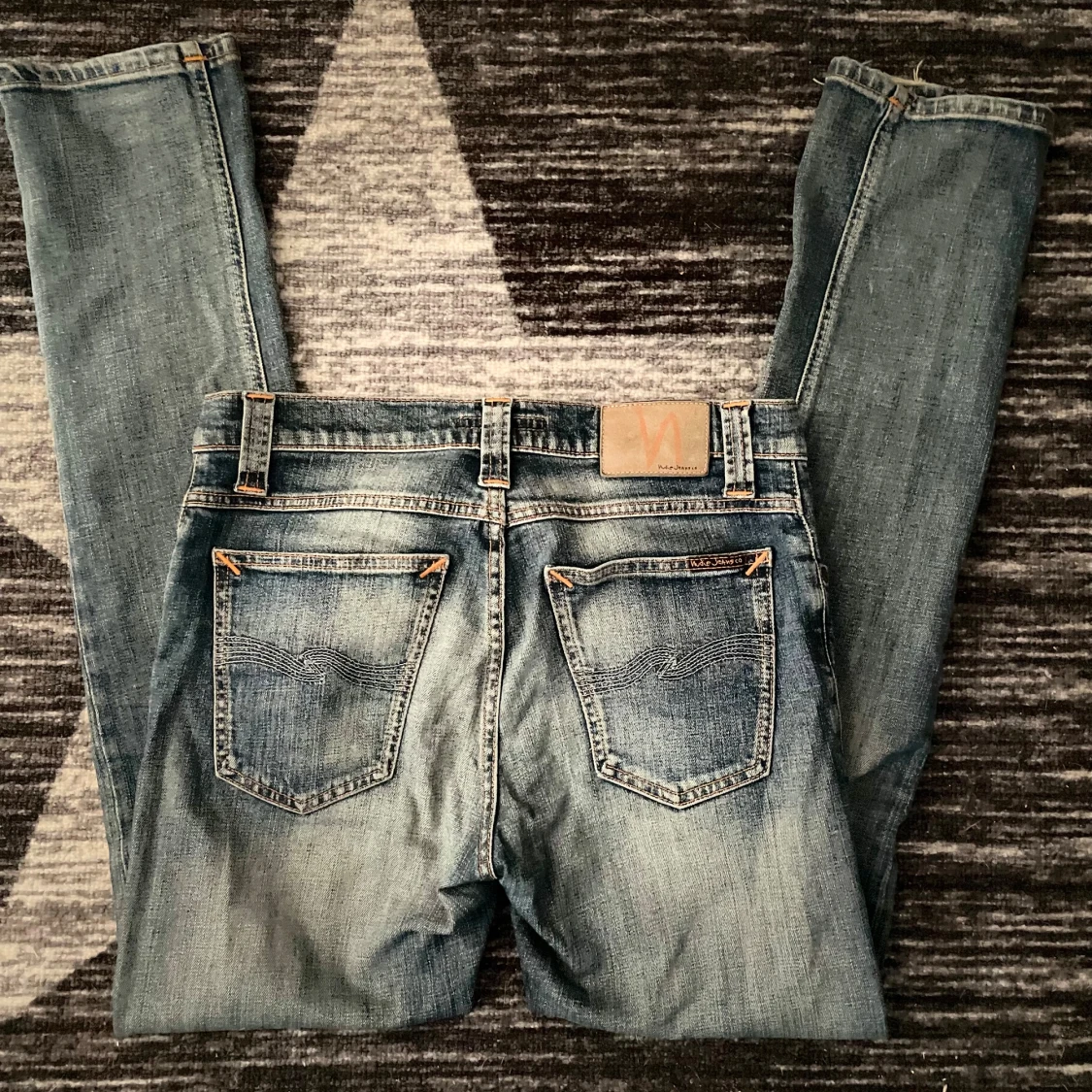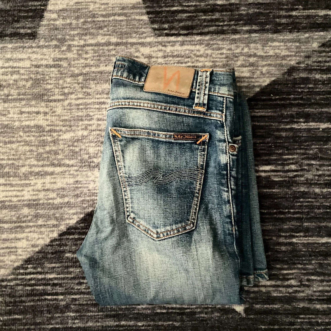Snygga jeans från nudie är lite sönder längst ner på ett av benen men inget man märker av pris går att diskutera hör av er vid frågor/bild