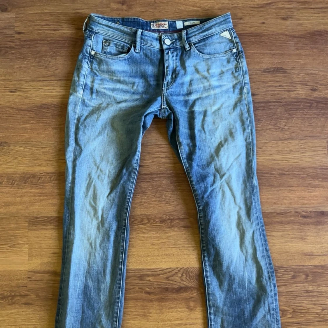 Snygga Replay Pearl jeans i ljusblå tvätt med klassisk femficksdesign och raka ben. Prislapp finns