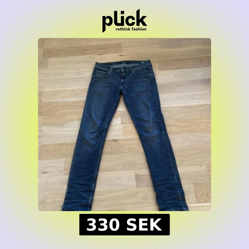 Säljer ett par svarta jeansbyxor från Replay med klassisk femficksdesign och raka ben. Jeansen har normal passform och är tillverkade i ett mjukt denimtyg. Perfekta för dig som gillar stilrena och tidlösa jeans. På båda bakfickorna är de ett litet märke men syns inget.