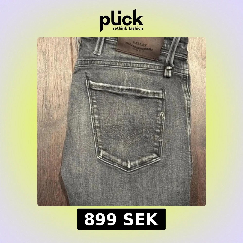 Snygga grå jeans från Replay med slitningar och klassisk femficksdesign. Jeansen har Replay-logga på fickan och läderpatch bak i midjan. Perfekta för en avslappnad och trendig look. Nypris 1800 kr.