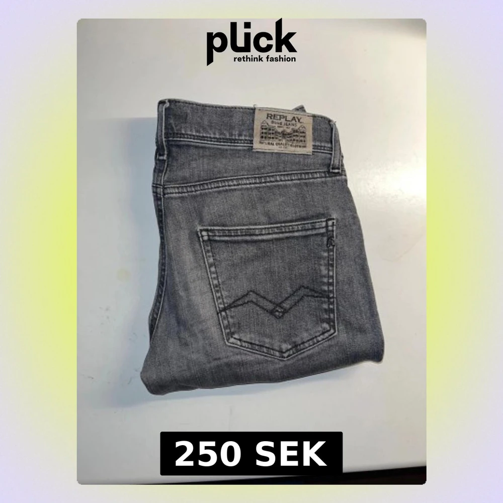 Säljer ett par Replay Wallys jeans i snygg grå tvätt. Jeansen har smal passform och är tillverkade i mjukt jeanstyg med vita kontrastsömmar. Storlekslapp saknas, uppskattad storlek W30 L30 men utgå ifrån måtten :) midja 37cm, längd 98cm. JAG SKICKAR EJ FLER BILDER NÄR JAG BÄR JEANSEN! för storleksguide hänvisar jag till måtten och för bättre inblick i passformen rekommenderar jag att googla på modellnamnet. kolla måtten noggrant :) s5