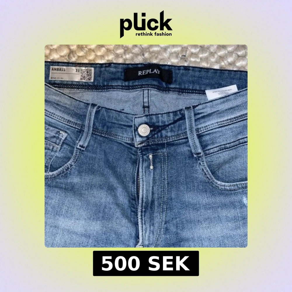 Säljer ett par Replay Anbass jeans i blå tvätt med snygga slitningar och klassisk femficksdesign. Dom är tillverkade i stretchigt denim för extra komfort. Perfekta för dig som gillar en modern och avslappnad stil. Pris kan diskuteras!