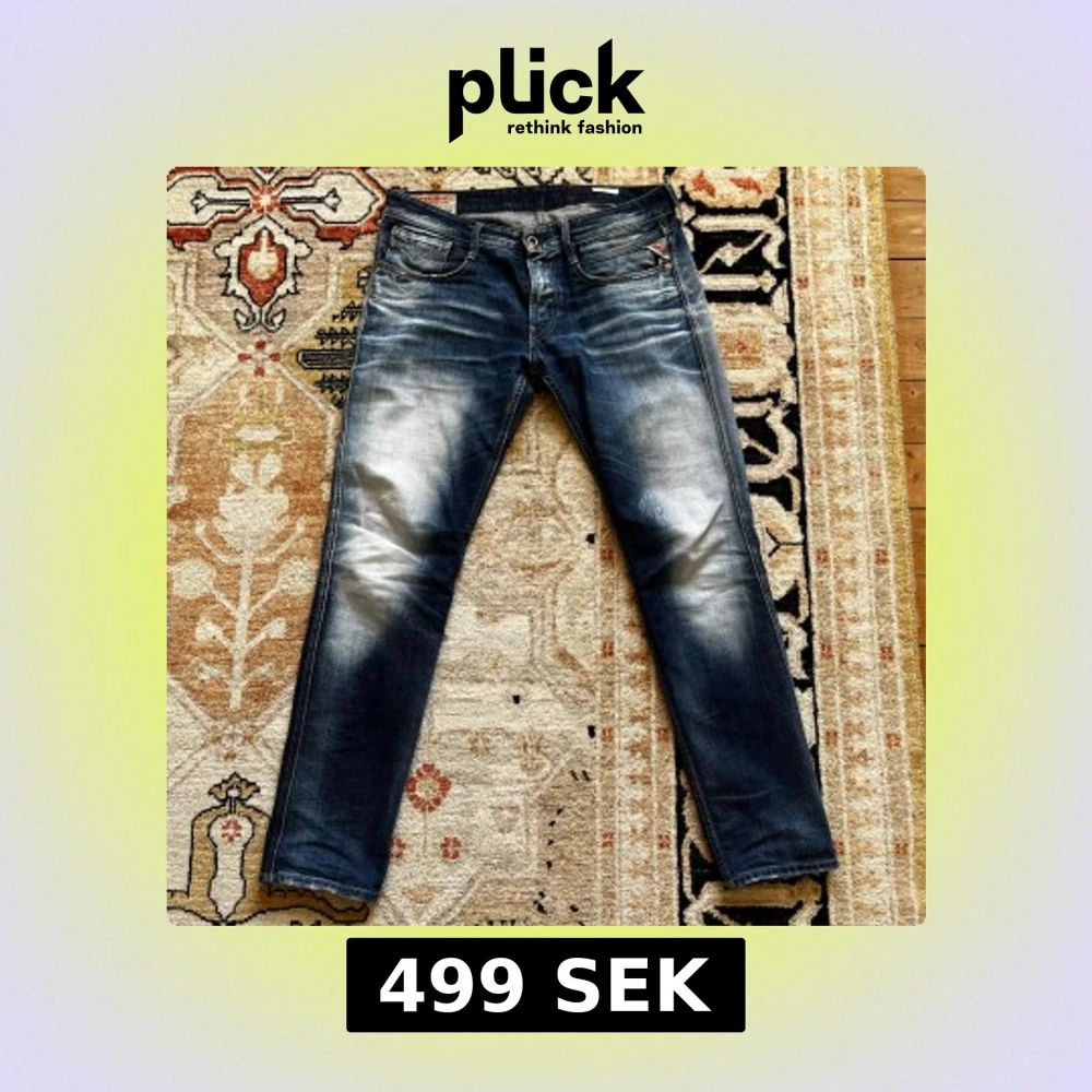 Säljer ett par Replay Anbass jeans i blå tvättad denim med snygga slitningar och klassiska fem fickor. Jeansen har normal passform och raka ben, med Replay-logga på bakfickan och läderpatch i midjan. Otroligt sällsynt och snygg tvätt. Skick 8/10. Strl 34. Pris 499