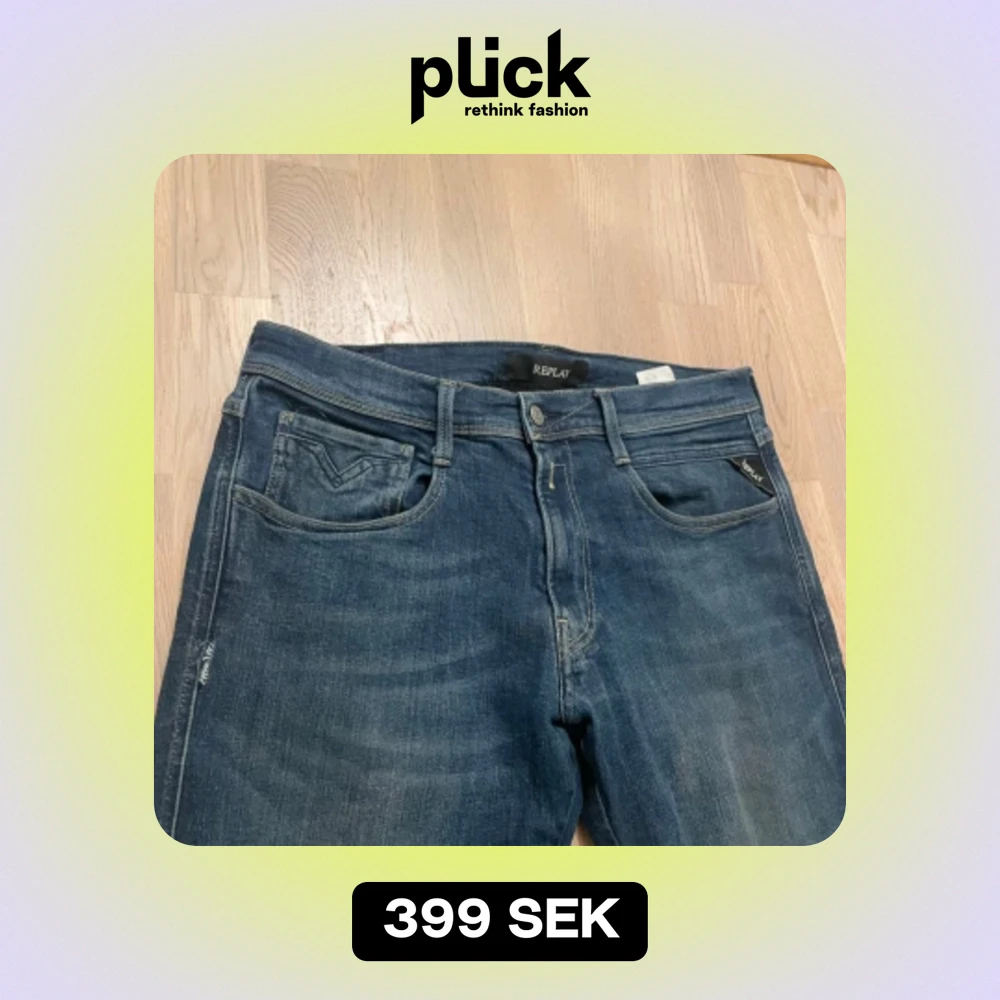 Sjukt snygga replay anbass i storlek 34/32 dem sitter perfekt på mig som är 180 70kg. Skriv om ni har några frågor ✌️