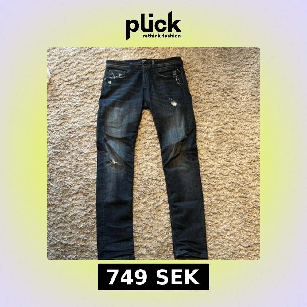 Säljer ett par svarta Replay jeans med snygga slitningar och detaljer framtill och baktill. Jeansen har fem fickor, knappgylf och slim ben. Iprincip nyskick knappt använda