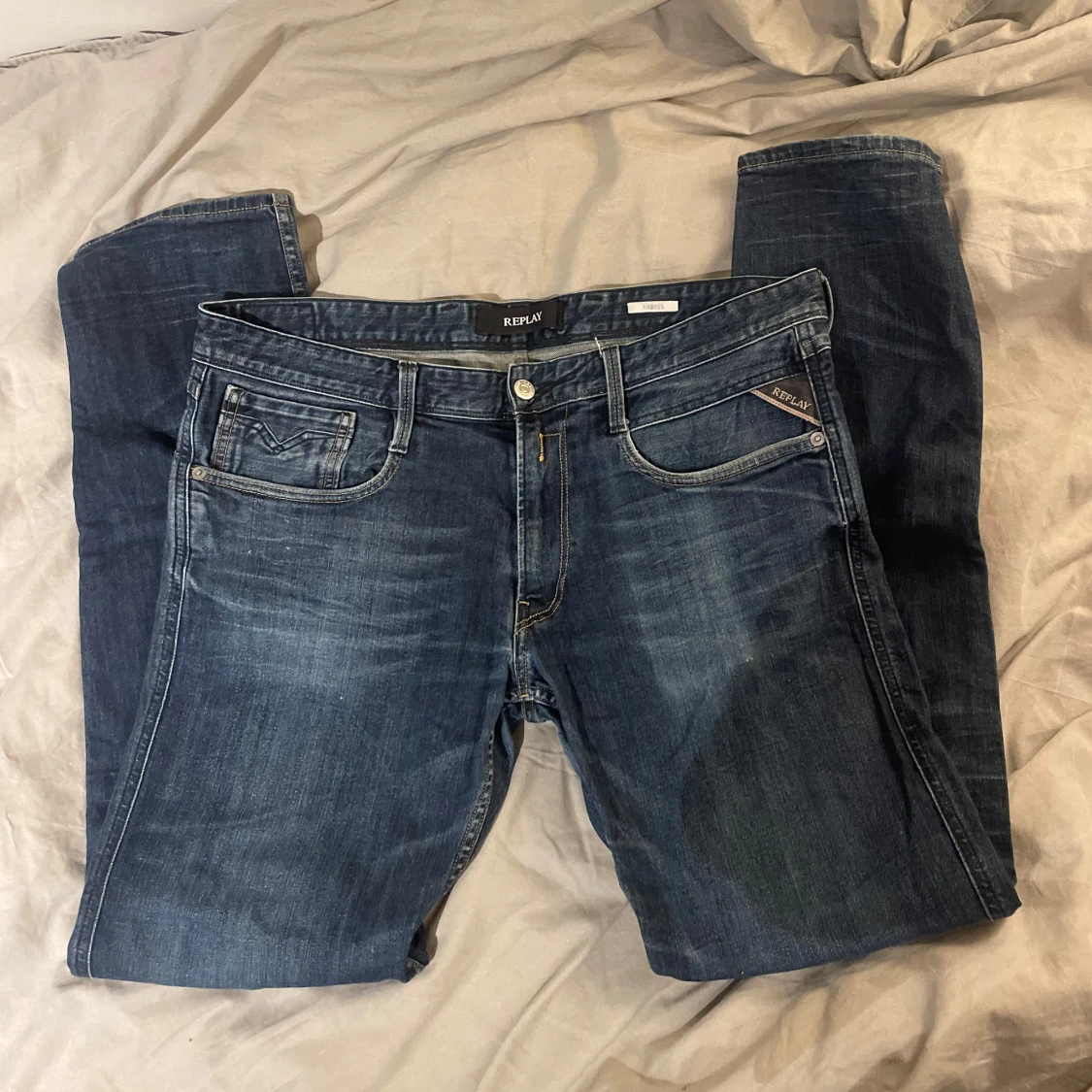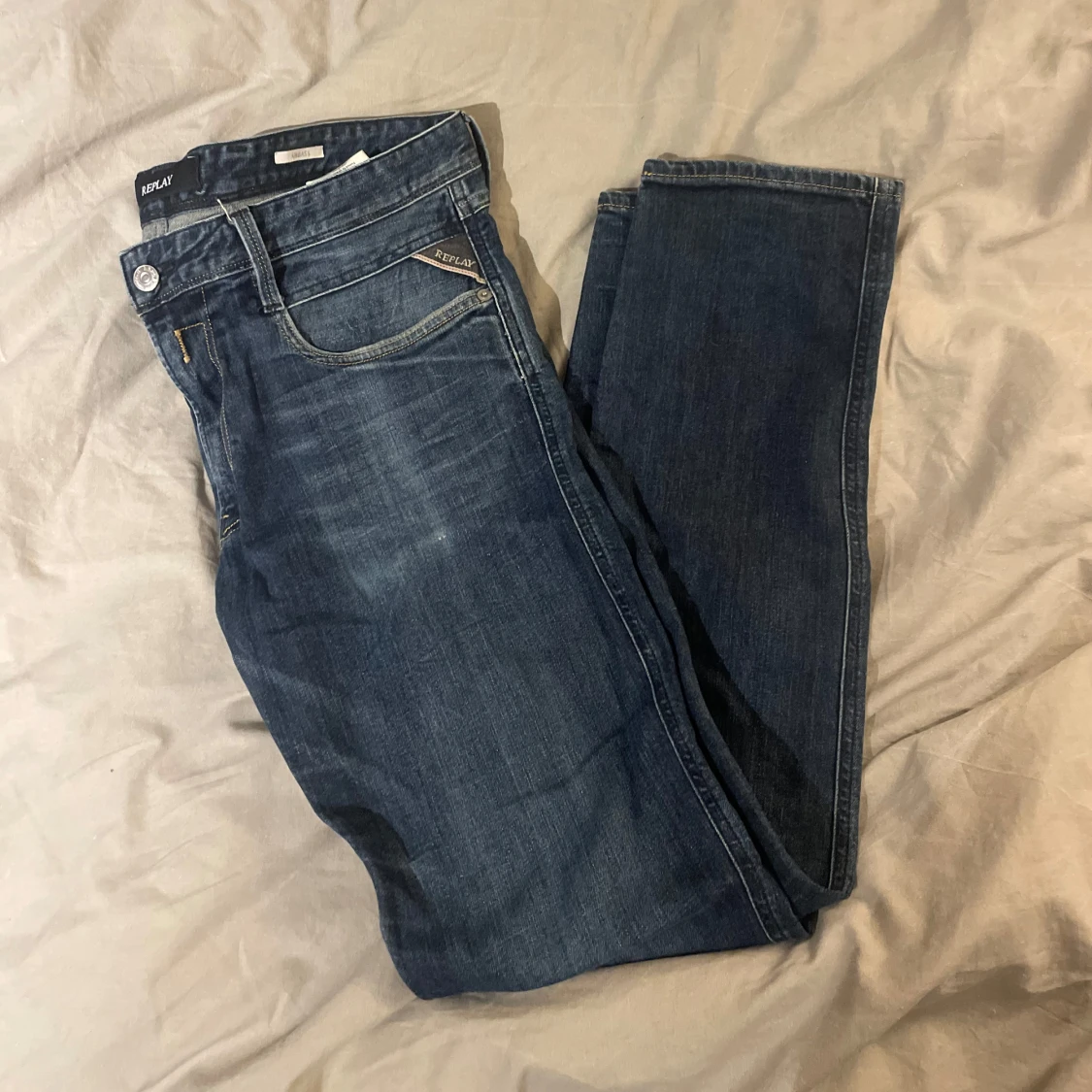 Riktigt feta blåa jeans från Replay i modellen Anbass, de har en klassisk femficksdesign och diskreta slitningar. Perfekta för en avslappnad stil. Storleken är 34/32. Vid frågor eller funderingar så är de bara att höra av sig!