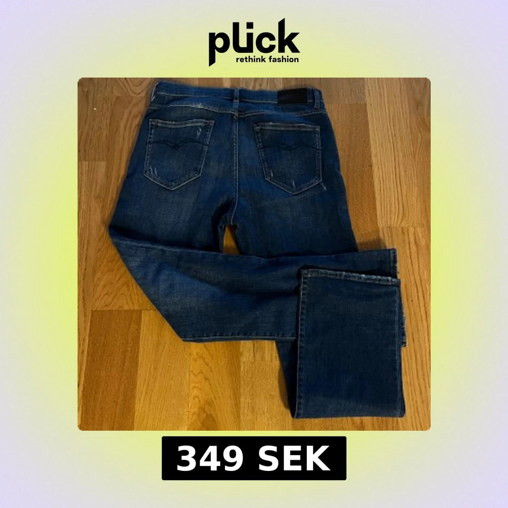 Snygga mörkblå jeans från Replay med klassisk femficksdesign och knappgylf. Perfekta för en avslappnad stil. Skriv vid minsta fundering och priset är diskuterbart vid snabb affär