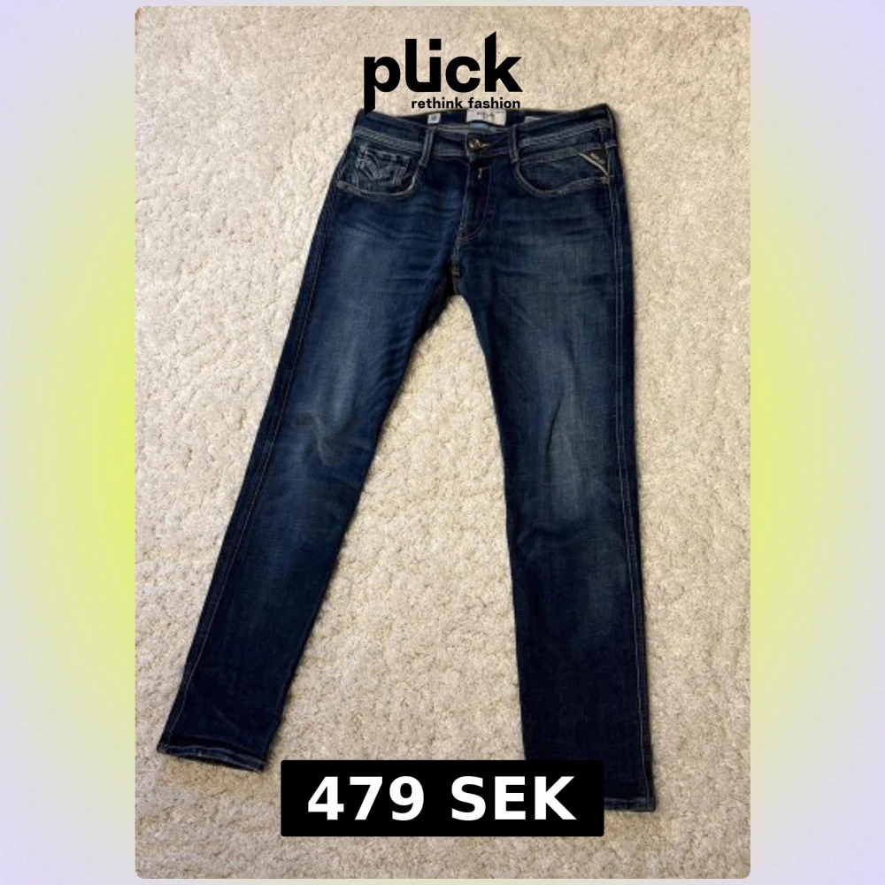Snygga mörkblå Replay Anbass jeans med klassisk femficksdesign och smal passform. Jeansen har diskreta slitningar och kontrastsömmar, samt läderpatch med Replay-logga bak. Perfekta för dig som gillar stilrena och moderna jeans.