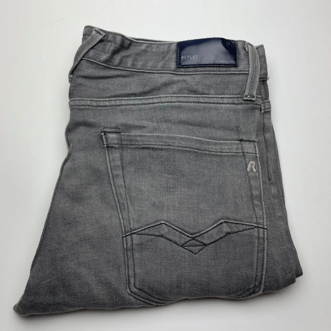 Snygga grå jeans från Replay i klassisk femficksmodell. Jeansen har diskreta sömmar och Replay-logga på bakfickan. Perfekta för dig som gillar en stilren look med en modern touch. Tillverkade i mjukt jeanstyg för skön passform.