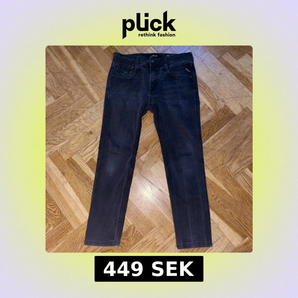 Svarta Replay Anbass jeans med slim passform och klassisk femficksdesign. Jeansen är i väldigt bra skick . Fraktar samma dag.