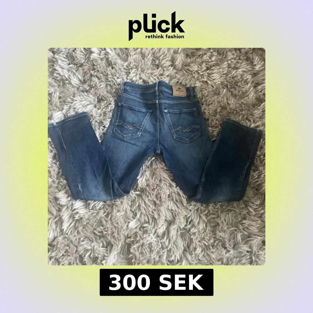 Säljer ett par klassiska blå jeans från Replay med raka ben och snygga detaljer på fickorna. Kom gärna med frågor!
