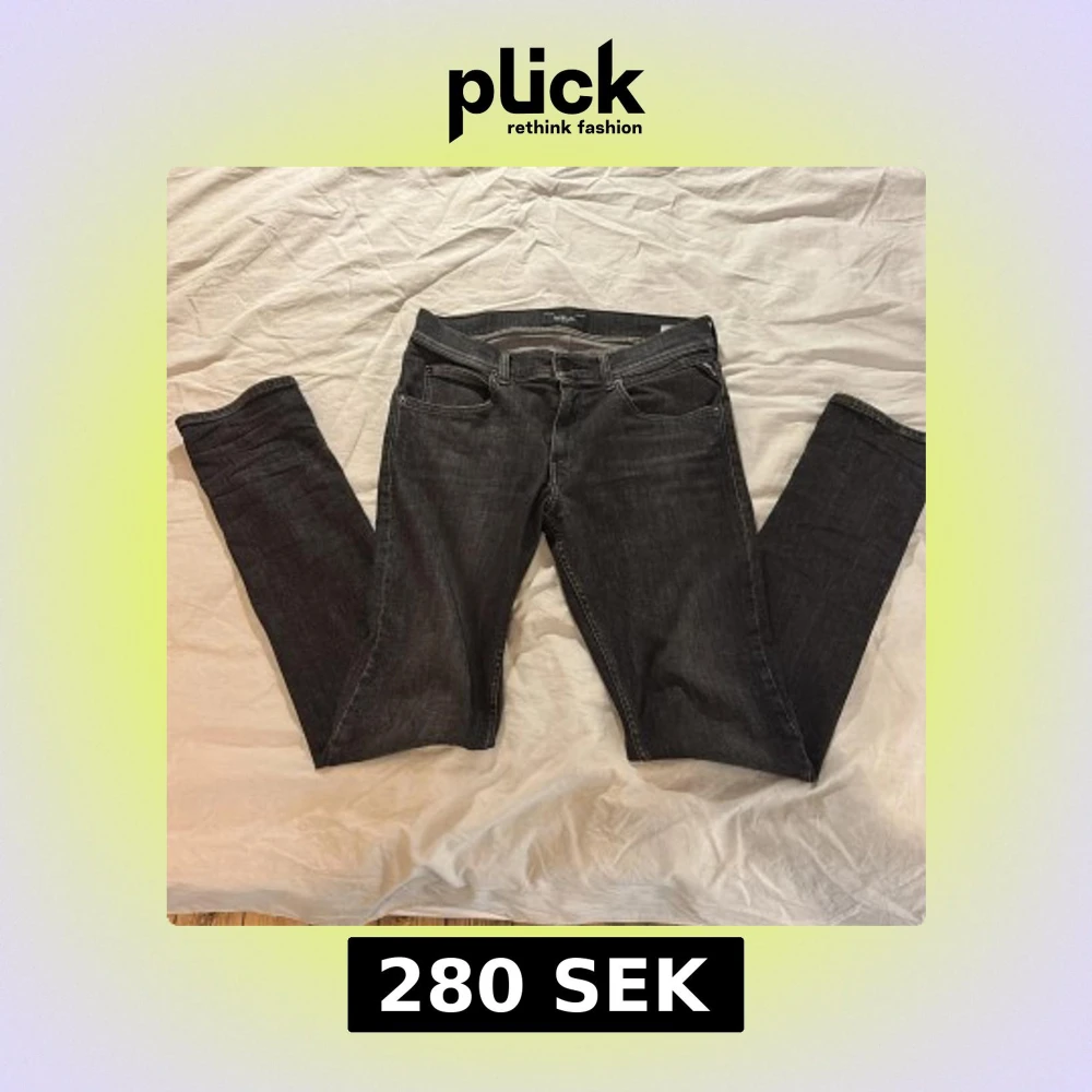 Säljer ett par svarta jeansbyxor från Replay med klassisk femficksdesign och raka ben. Jeansen har normal passform och är tillverkade i ett mjukt denimtyg. Perfekta för dig som gillar stilrena och tidlösa jeans.