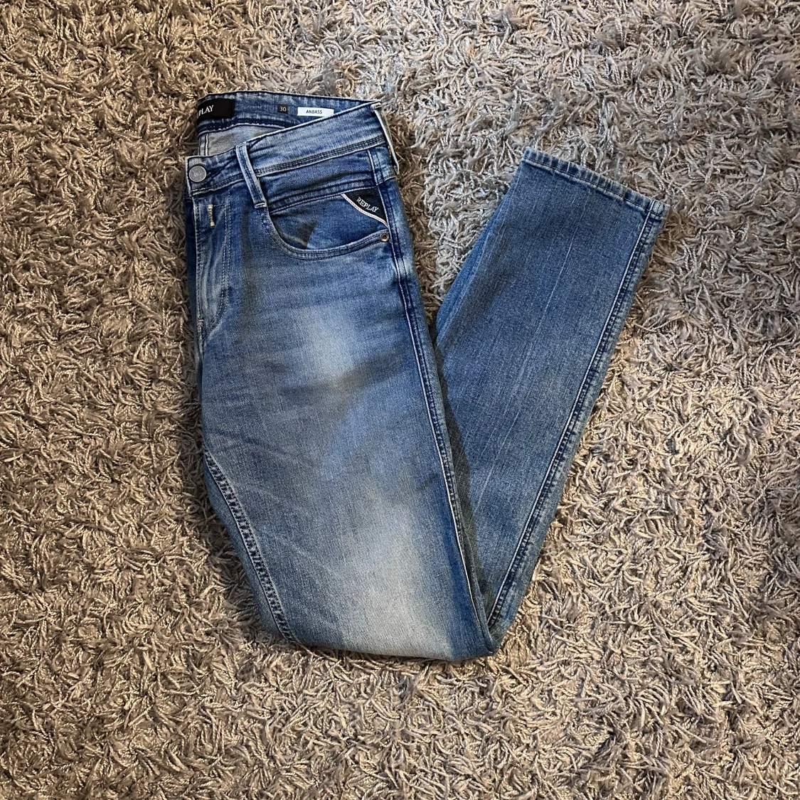 Säljer ett par riktigt feta replay anbass i storleken W30/L32! Jeansen är endast testade en gång så det finns inga tecken på användning, vid funderingar och frågor skriv ett dm. Pris ej hugget i sten✍️