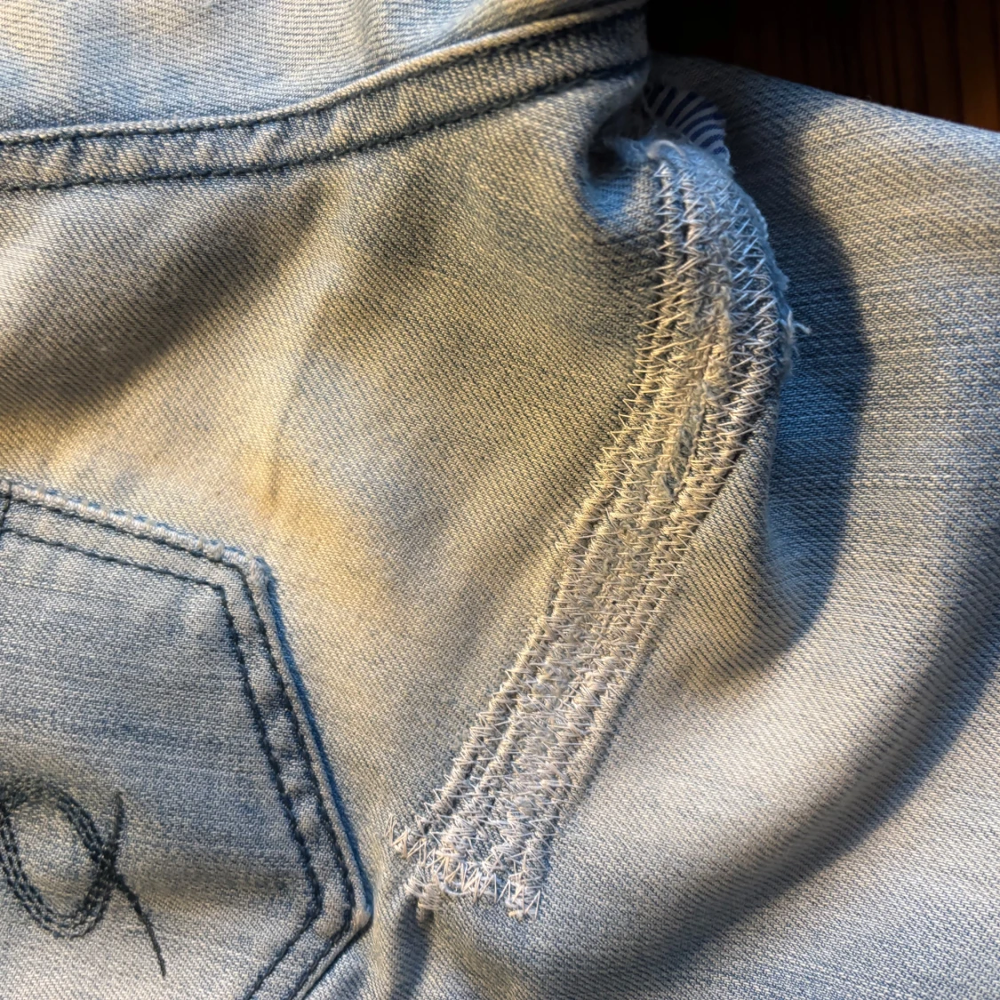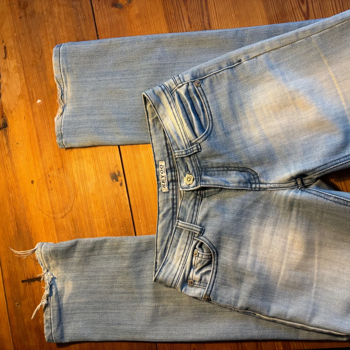 Snygga ljusblå jeans från Replay med slitna detaljer vid benslut och bakfickor. Jeansen har en klassisk femficksdesign och en knappgylf. Perfekta för en avslappnad stil. Har behövt sy ihop de för de spräckts men ingenting som syns så tydligen när jeansen är på