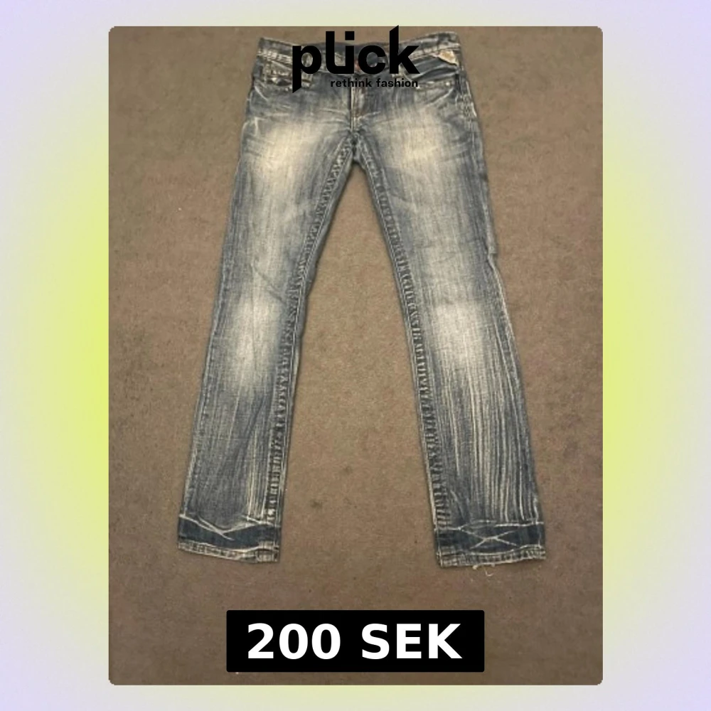 Säljer dessa sjukt snygga Replay jeans. De är lågmidjade och raka/bootcut. W27 L30. De har två hål på insidan av låren som man ser på sista bilden.