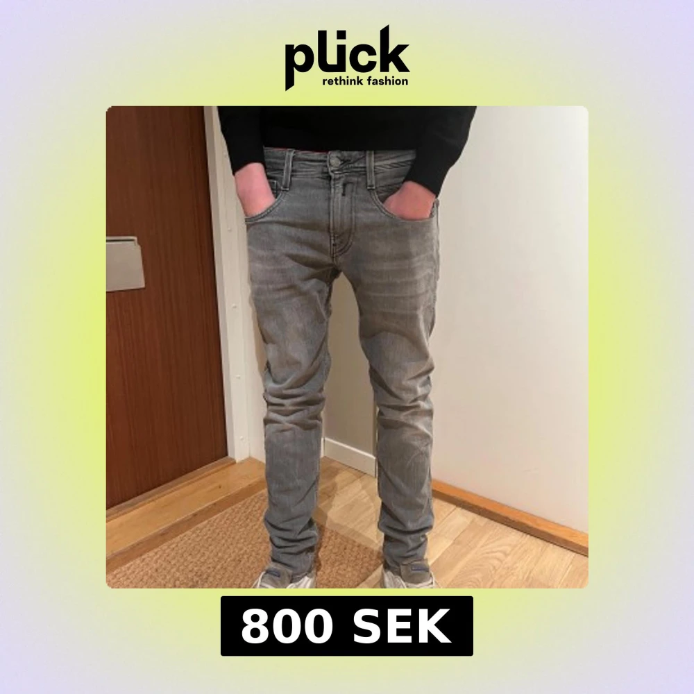 Snygga grå jeans från Replay med en klassisk femficksdesign. De har en normal passform och är perfekta för en avslappnad stil. Jeansen har en dragkedja och knapp framtill. Han på bilden har storlek 28 i midjan och är en och 81cm lång. Jensen är andvända 3 gånger.