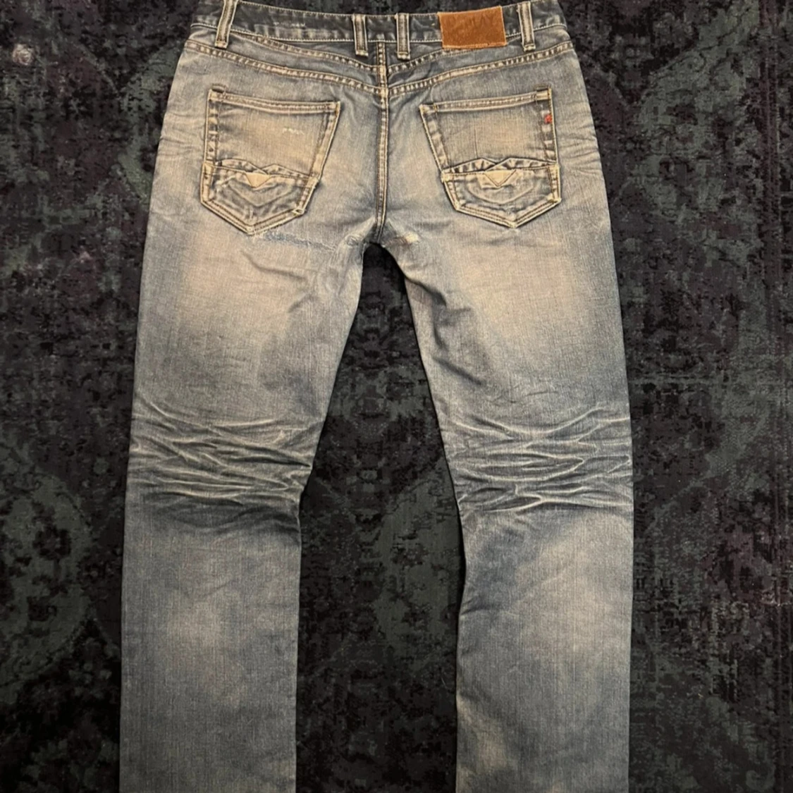 Replay Selvedge jeans, asfeta, cirka waist 46cm length 106. Lagats i skrevet. Meddela mig vid funderingar. Priset är ej hugget i sten. Kan sänka ifall du köper snabbt.