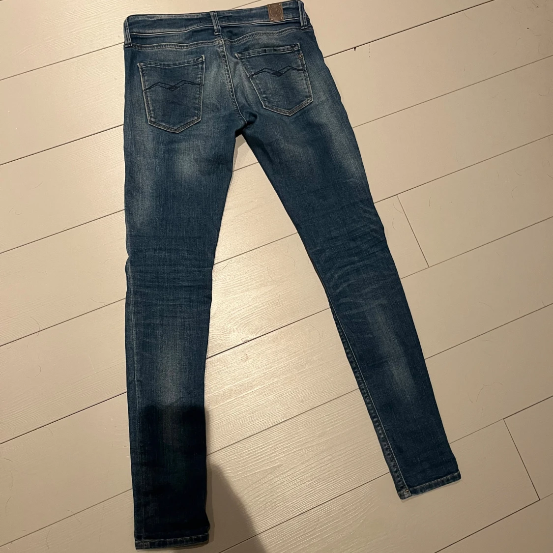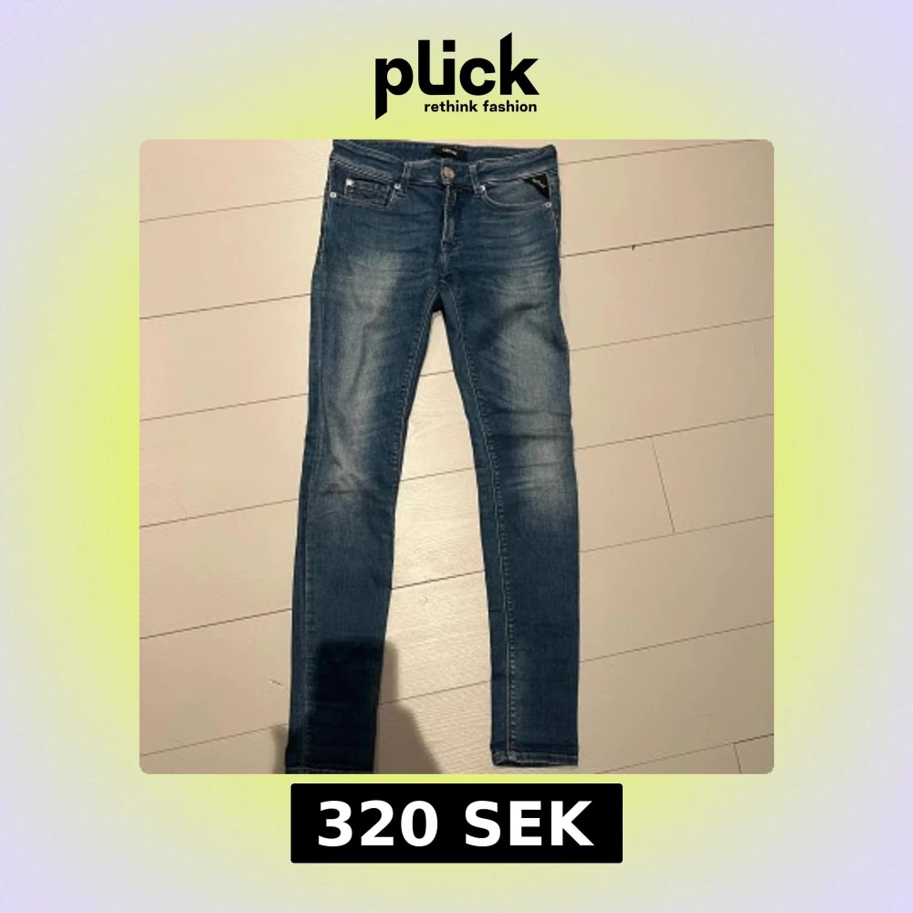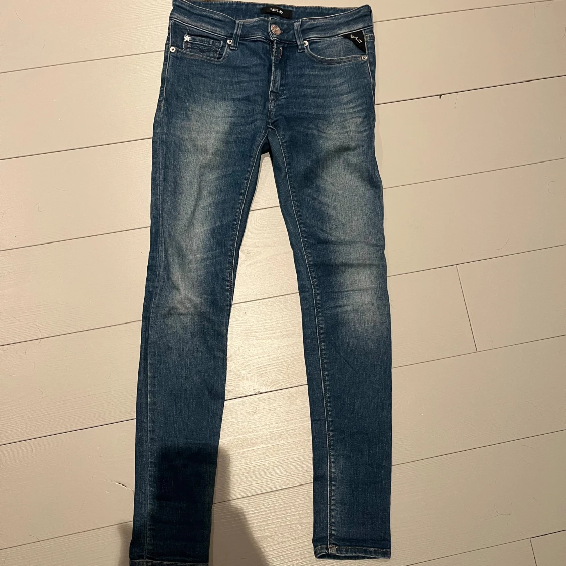 Snygga Replay slim jeans i klassisk blå tvätt med slim fit. Jeansen har fem fickor, dragkedja och knapp framtill samt diskreta slitningar för en cool look. Tillverkade i stretchig denim för skön passform.