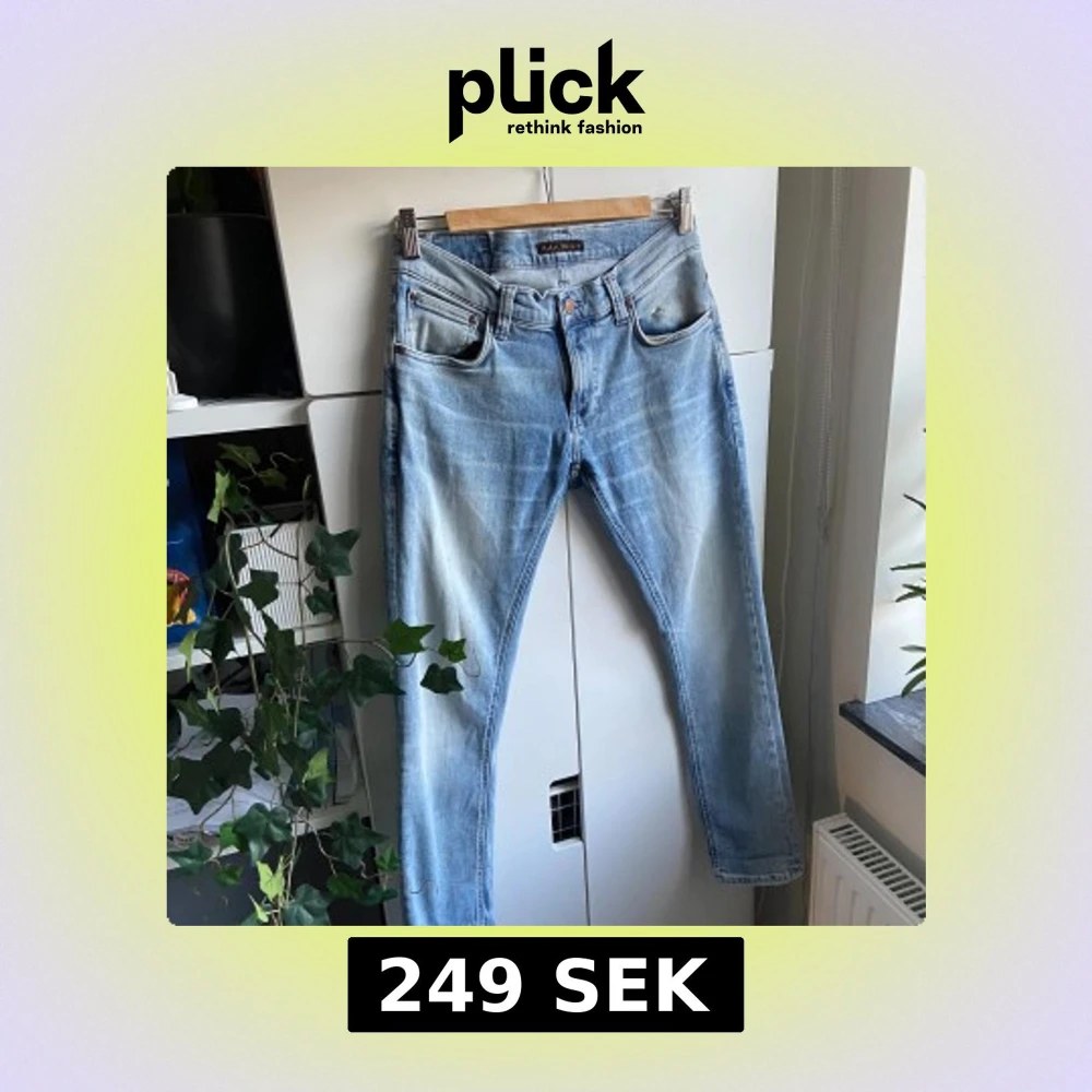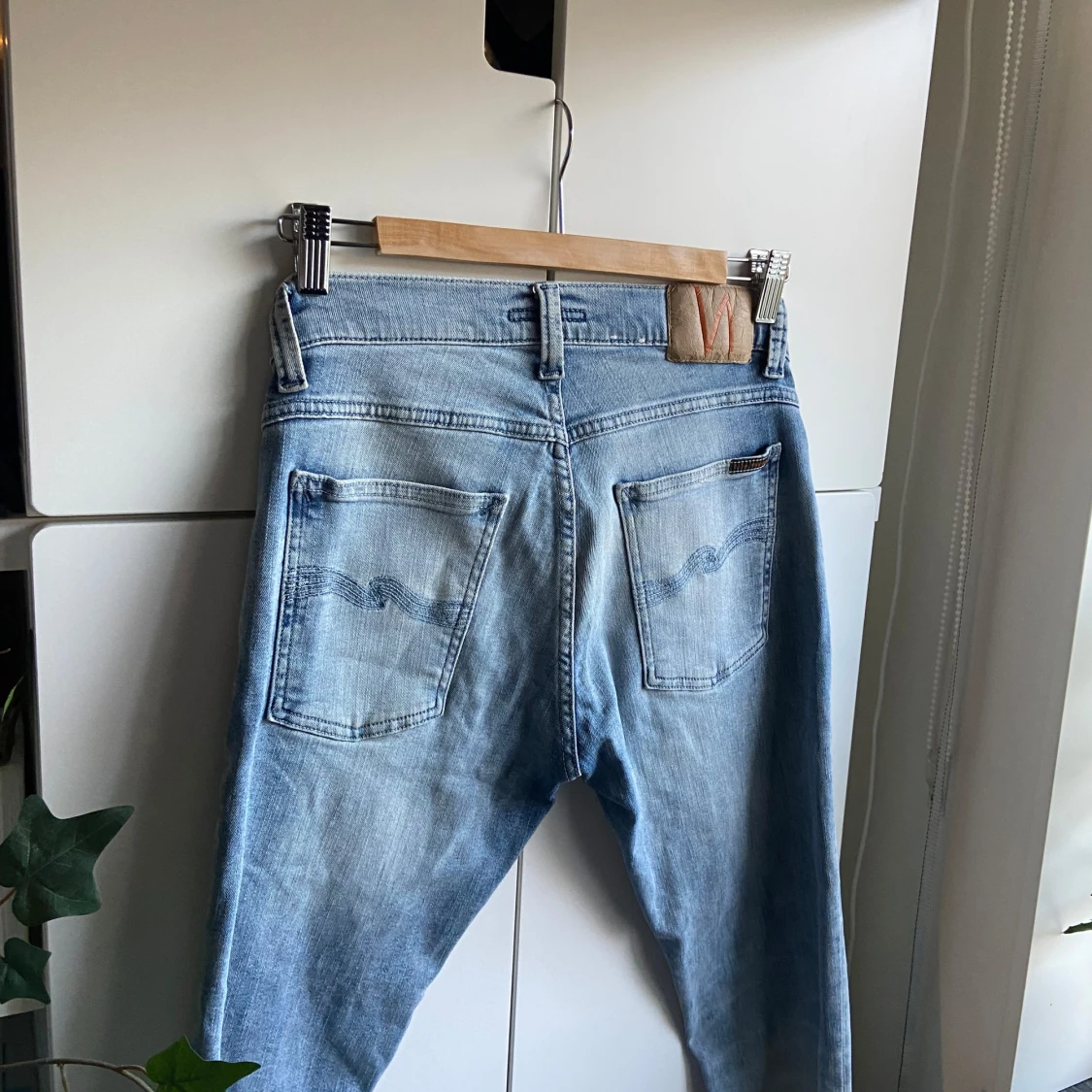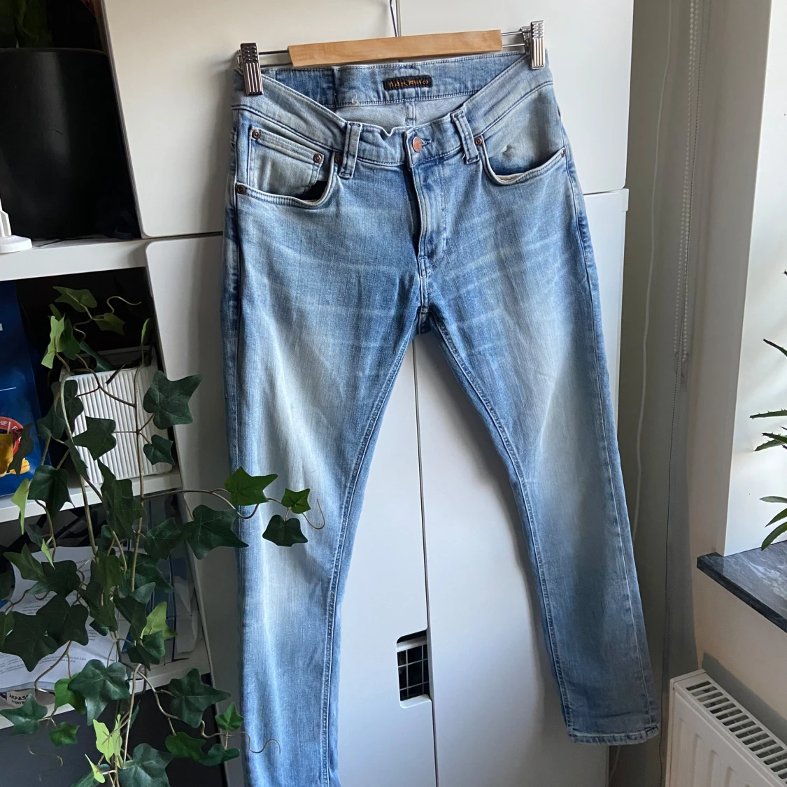 Tjenare! Jag säljer ett par ljusblå Nudie jeans i storlek 29/30. Priset är förhandlingsbart