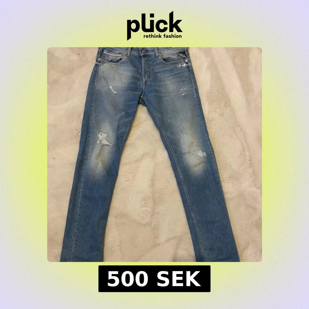 Hej! Säljer ett par Replay Grover jeans med slitningar, jeansen är ljusblå. Inga tecken på användning. Hör av dig vid frågor.