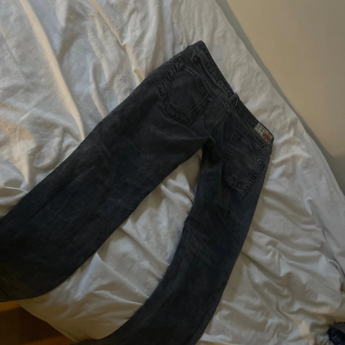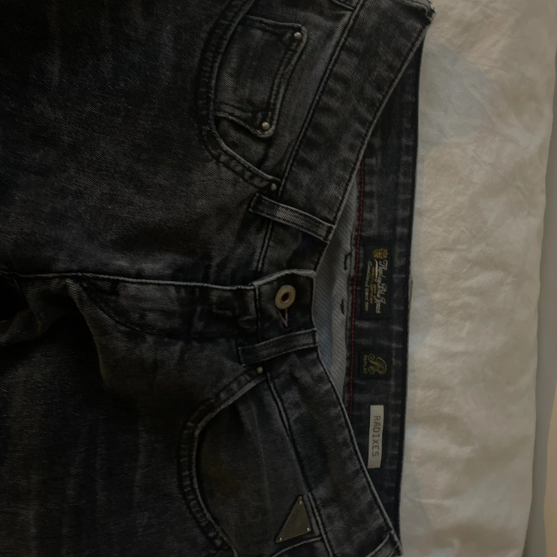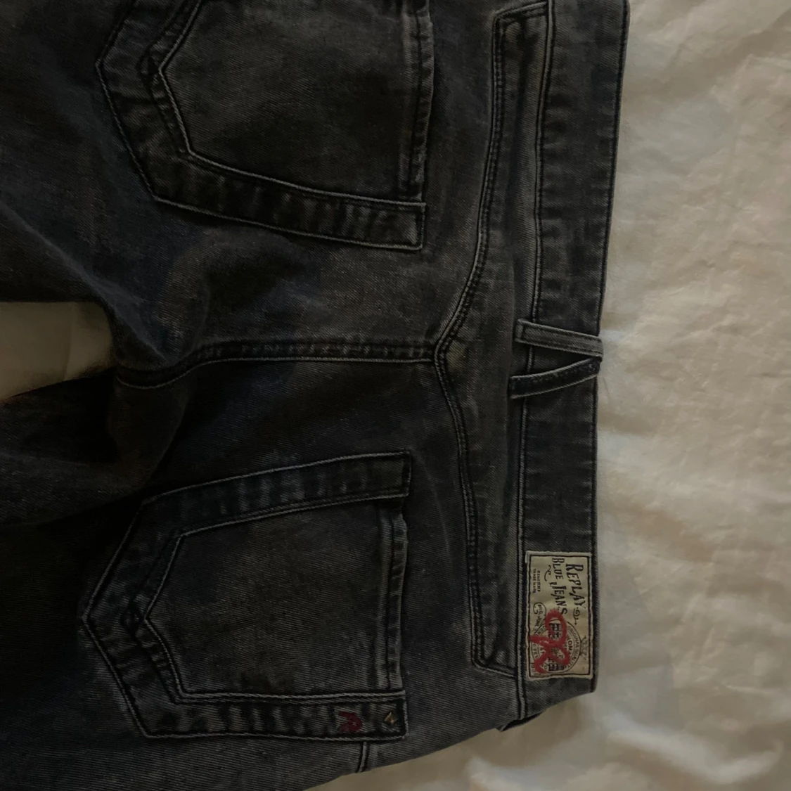 Säljer ett par Replay Roxxes jeans i svart tvättad denim. Klassisk femficksmodell med raka ben och snygga detaljer som Replay-märke på bakfickan och etikett bak i midjan. Passar dig som gillar stilrena och tidlösa jeans.