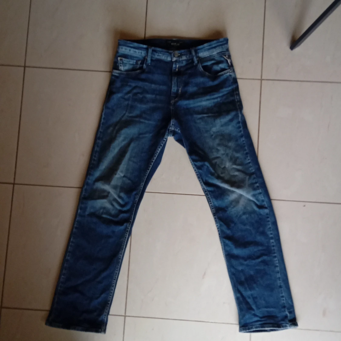 Säljer ett par klassiska blå jeansbyxor från Replay med raka ben och femficksdesign. Jeansen har normal passform och är tillverkade i slitstarkt denimtyg. Perfekta för en avslappnad stil. Passar 160 - 175. Nypris: 800. Pris är diskuterbart
