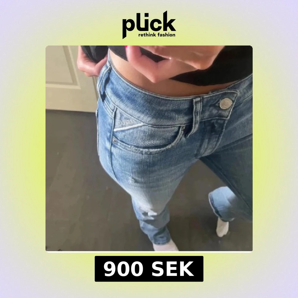 Skit snygga ljusblå low waist bootcut jeans från Replay. Använd ca 3 ggr. Nypris: 1700kr