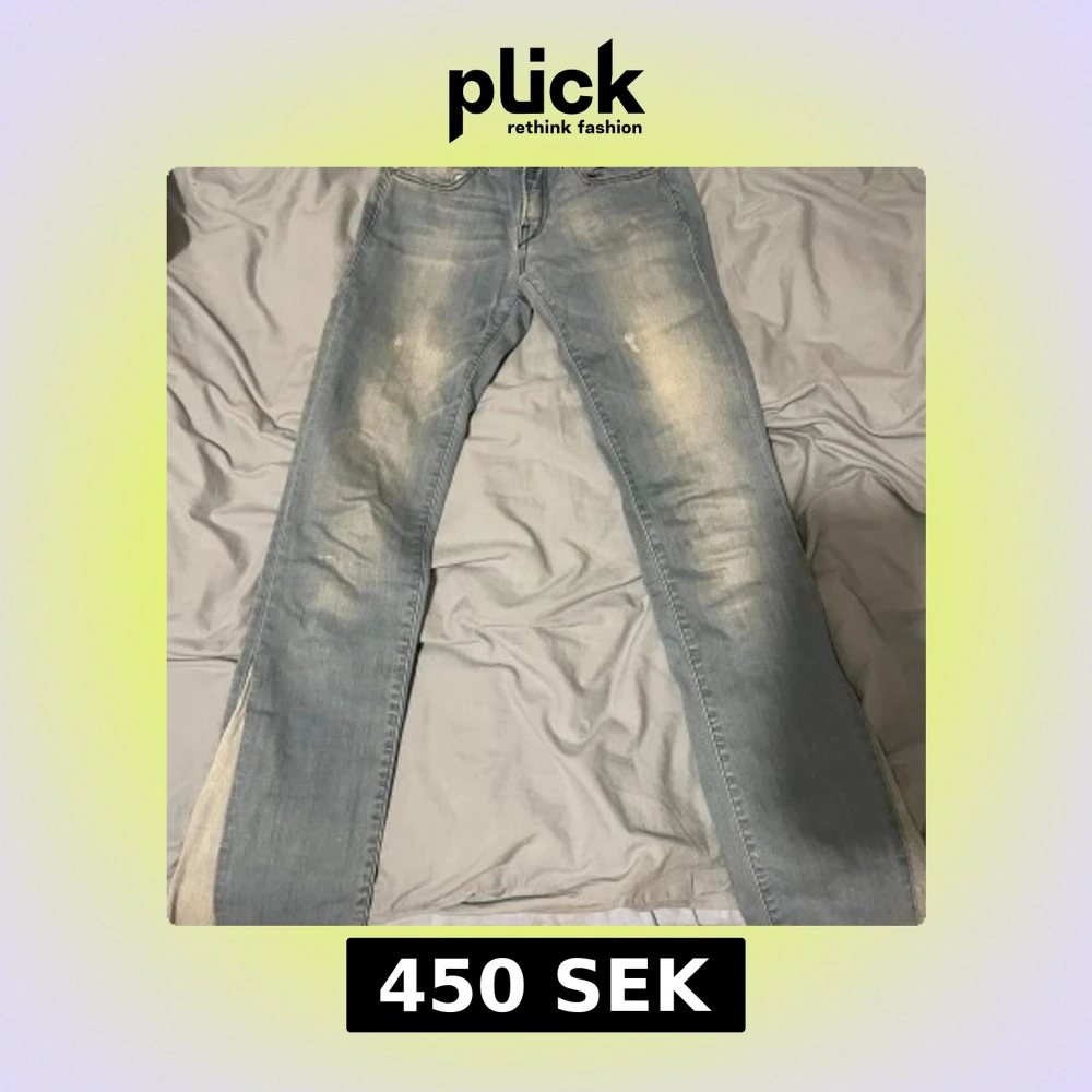 Säljer ett par ljusblå jeans från Replay med original skinny jeans men har sytt om till bootcut. Jeansen har klassisk femficksdesign, dragkedja och knapp framtill. Säljer för de börjar bli för små för mig.