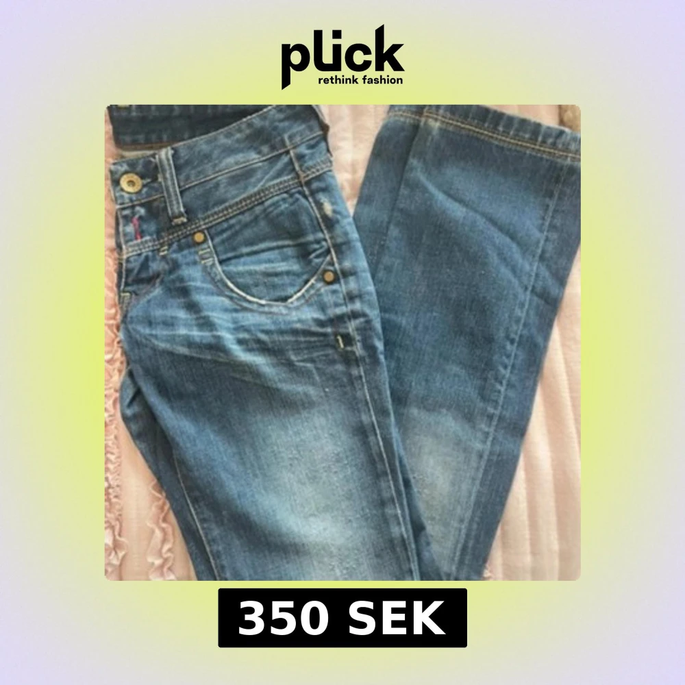 Säljer superfina blå jeans från Replay med låg midja och slitna detaljer. Midjemått: 37 cm Innerbenslängd: 81,5 cm 💕