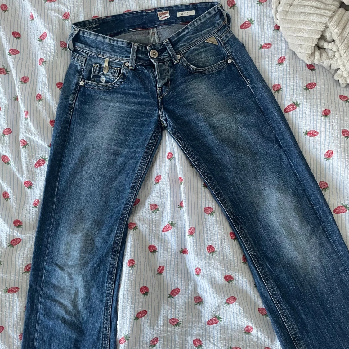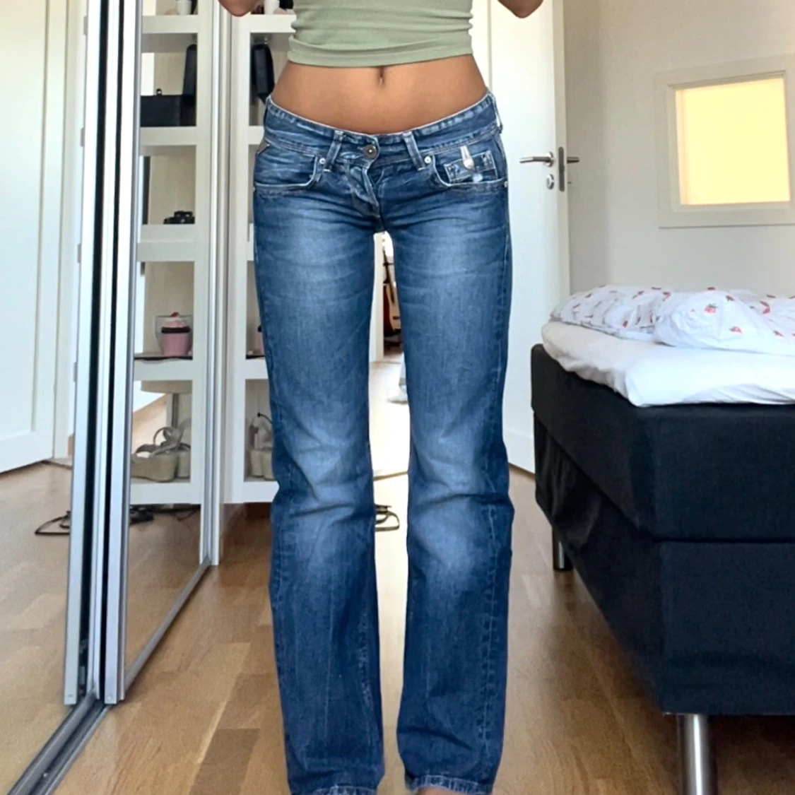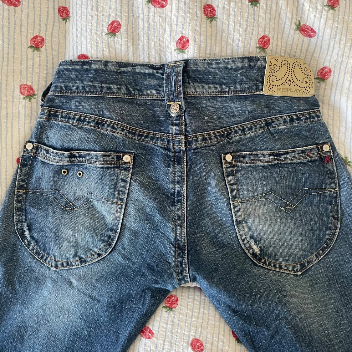 Säljer dessa skitsnygga lågmidjade replay jeans i storlek w27 l 32. Midjemåttet rakt över är 37-38 cm, grenhöjden är 21 cm och innerbenslängden är 77 cm. Perfekta i längden för mig som är 170 cm med relativt korta/medellånga ben. Inga defekter (möjligtvis lite slitna längst ner i benen). Skriv för fler bilder eller vid frågor! Öppen för prisförslag
