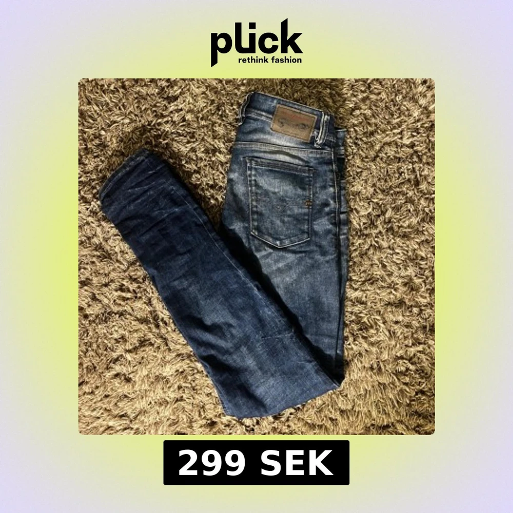Snygga diesel jeans i mörkblå tvätt med klassisk femficksdesign och läderpatch bak i midjan. Jeansen har smal passform och är tillverkade i slitstark denim med snygga slitningar för en cool look.