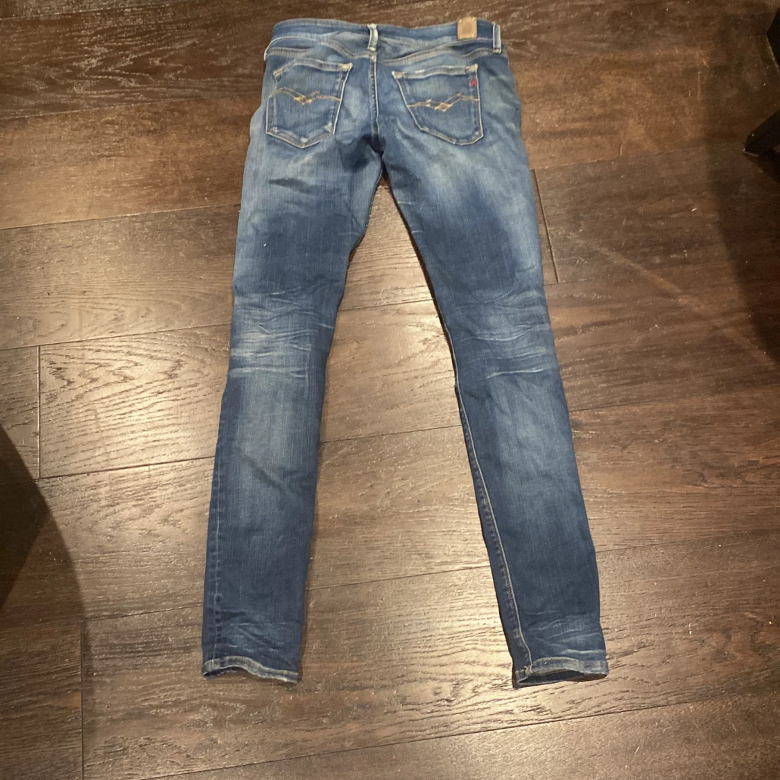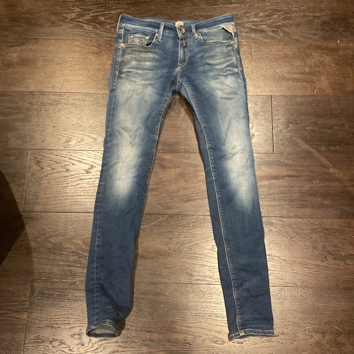 Snygga blå skinny jeans från Replay med klassisk femficksdesign och broderad bakficka. Jeansen har en smal passform och är tillverkade i mjukt jeanstyg som sitter tajt längs benen. Perfekta för dig som gillar en stilren och modern look. Kom med bud o frågor priset är inte spikat!