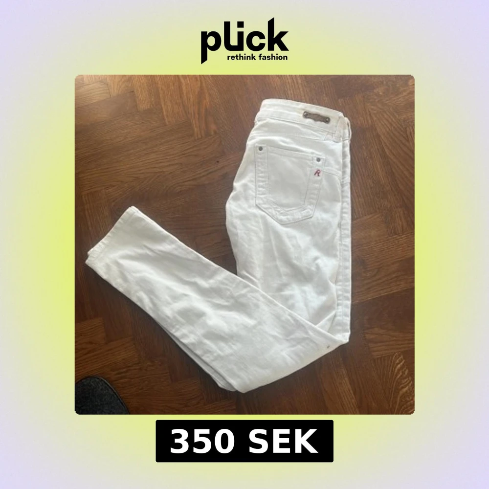 Säljer ett par snygga vita jeans från Replay med en stilren design. Byxorna har en slim passform. Byxorna har slitningar och är i storlek W27 L30 (liten i storleken) Säljer på grund av att de är för små för mig. Passar bäst på 160-168. Väldigt bra skick.