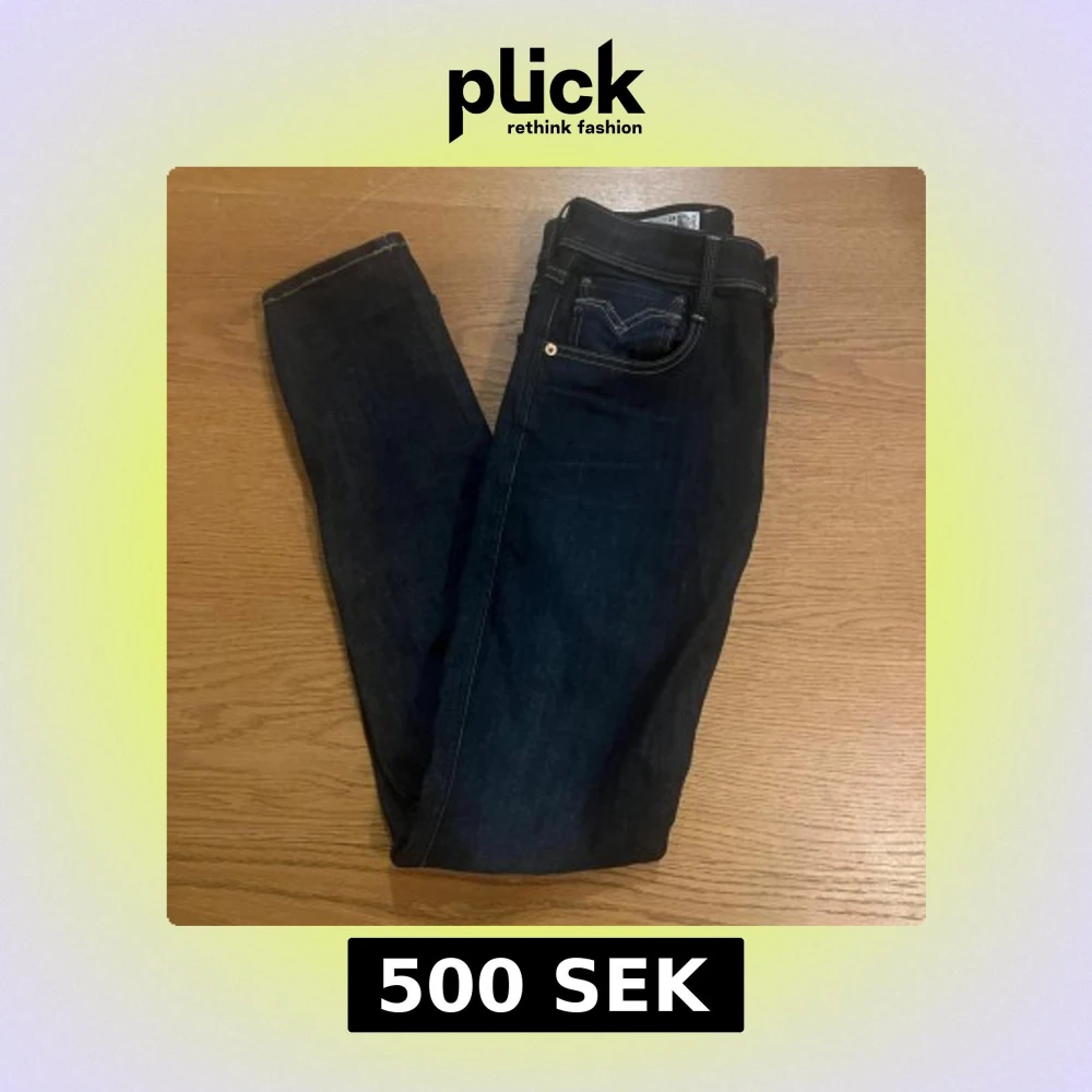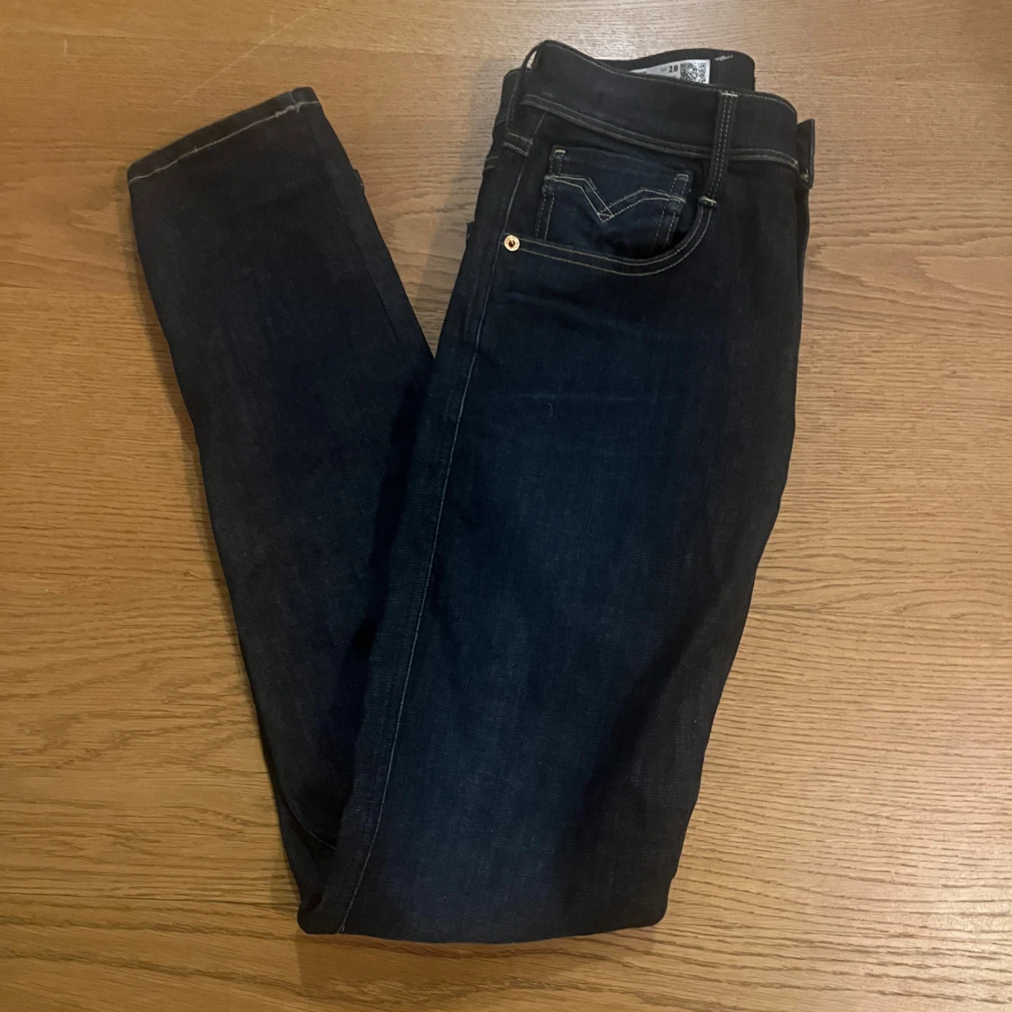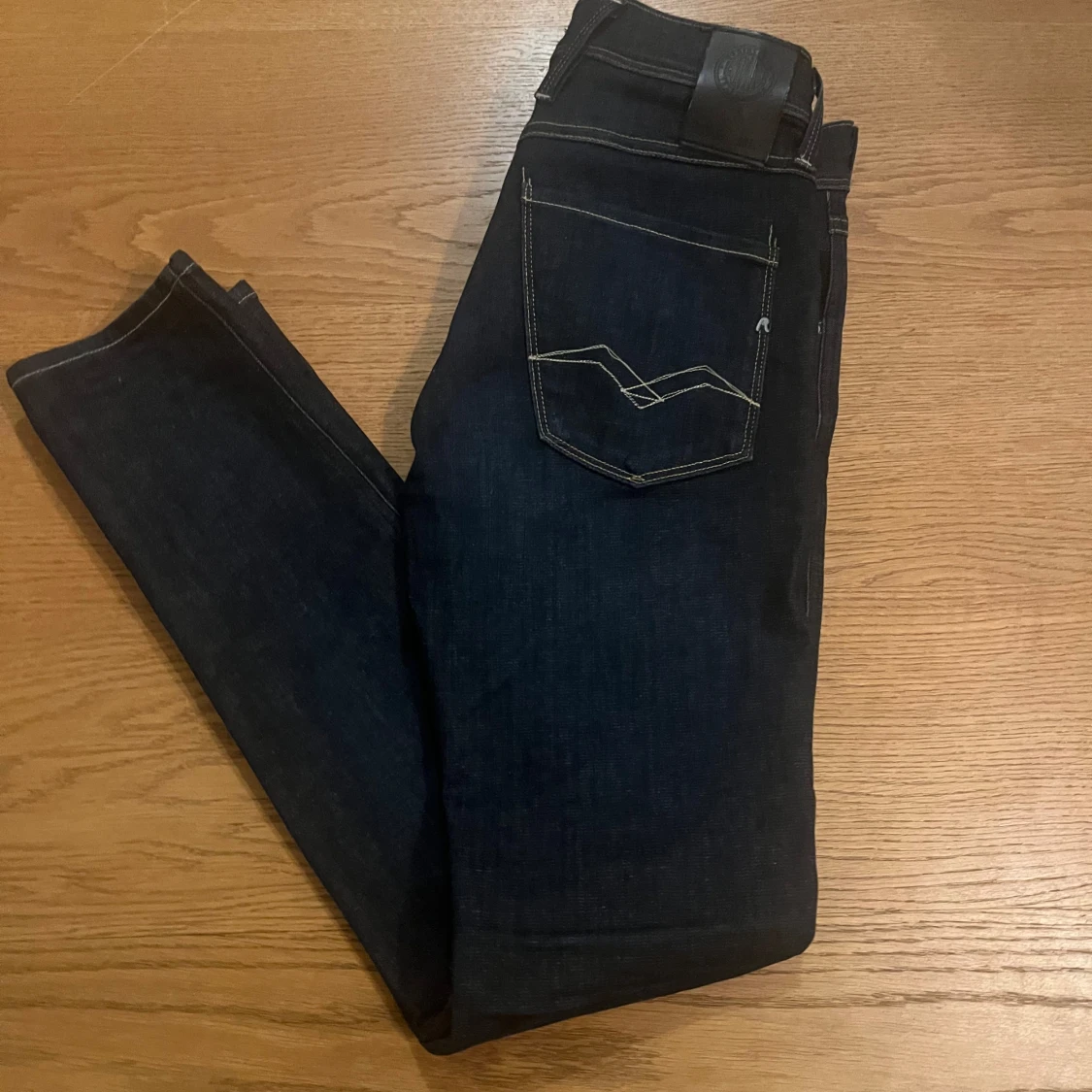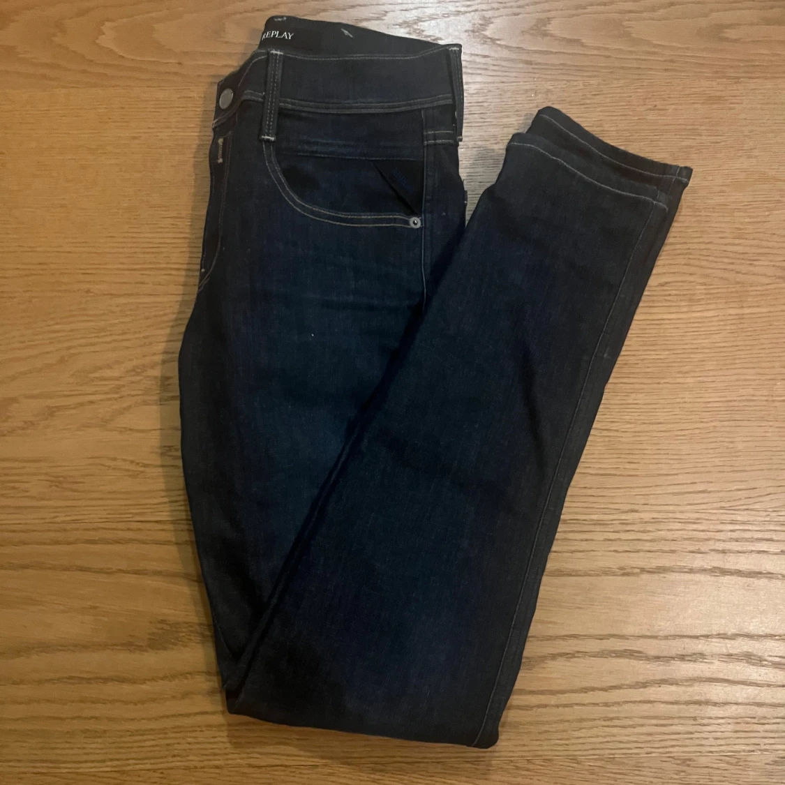 Snygga mörkblå jeans från Replay med klassisk femficksdesign och diskreta sömmar. Det är modellen Anbass hyperflex och är alltså slim