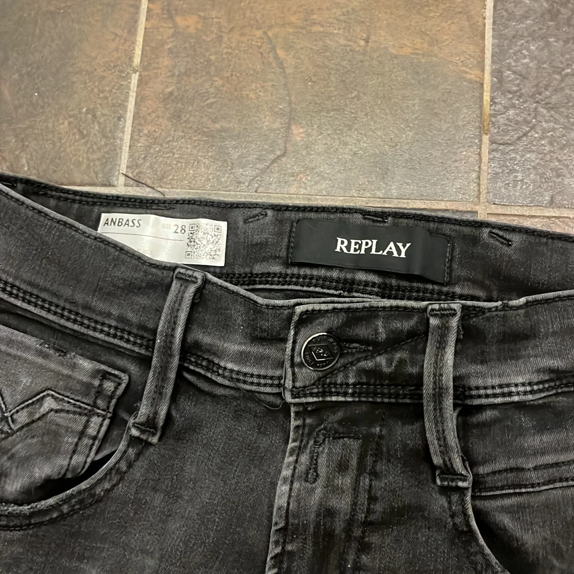 Snygga svarta jeansbyxor från Replay i modellen Anbass. De har en klassisk femficksdesign med knapp och dragkedja framtill. Jeansen har en diskret Replay-logga i blått vid fickan och är perfekta för en stilren look. Vi snabb affär går ner i pris