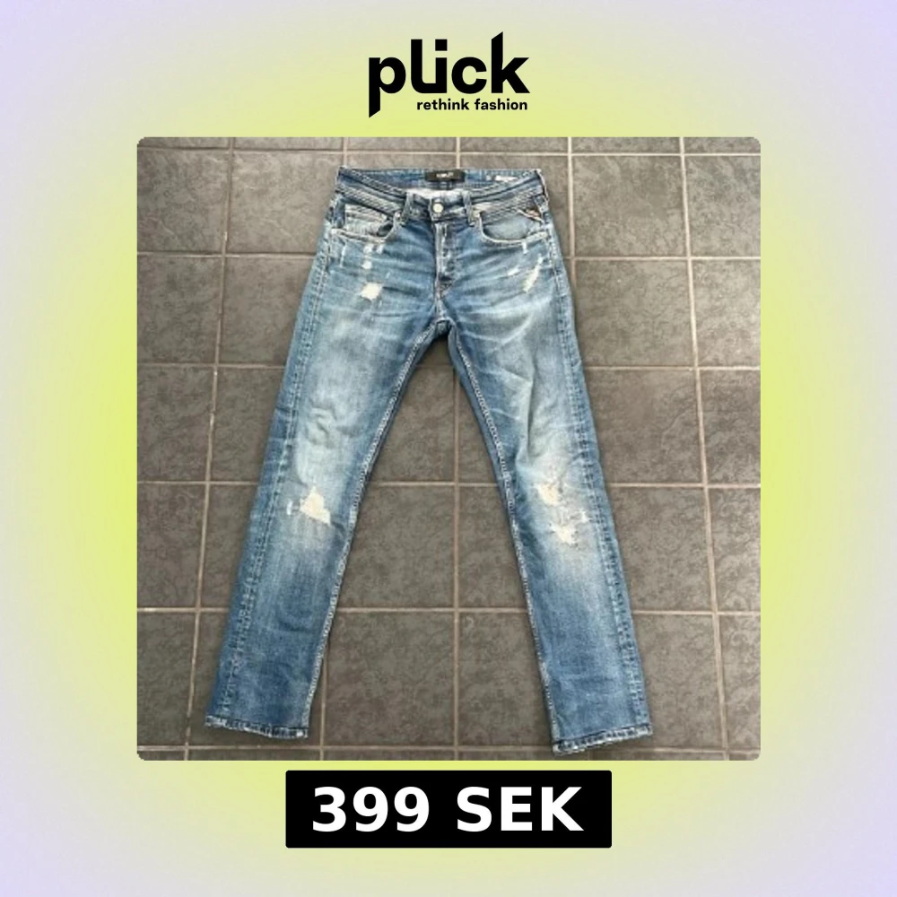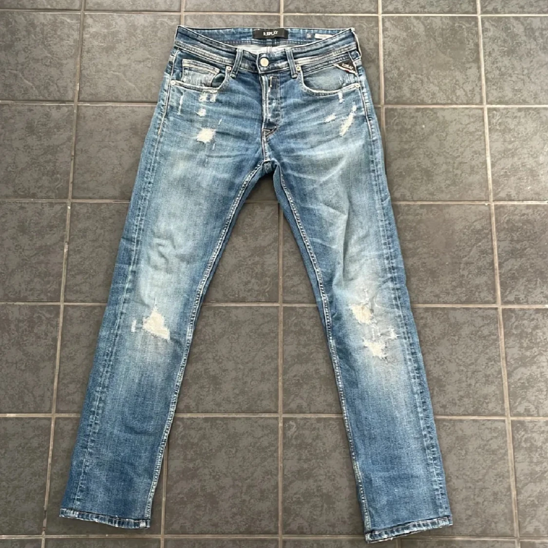 Säljer dessa Replay ”Grover” i storlek 28/30. De är uppsydda från L34. Inga större defekter alls. Hör av er vid funderingar så löser vi en bra deal.