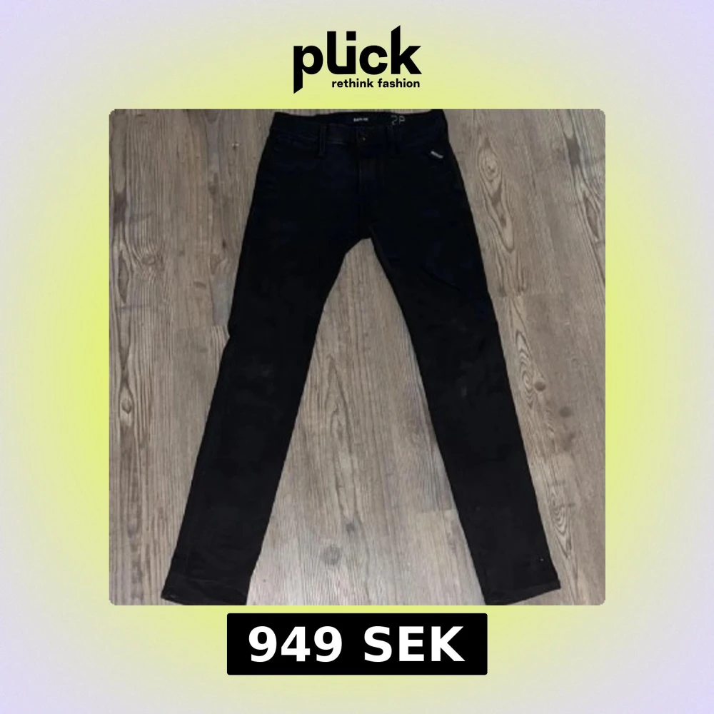 Snygga svarta jeansbyxor från Replay i modellen Anbass. De har en slim passform och är perfekta för en stilren look. Byxorna har skicket 10/10💯🦁