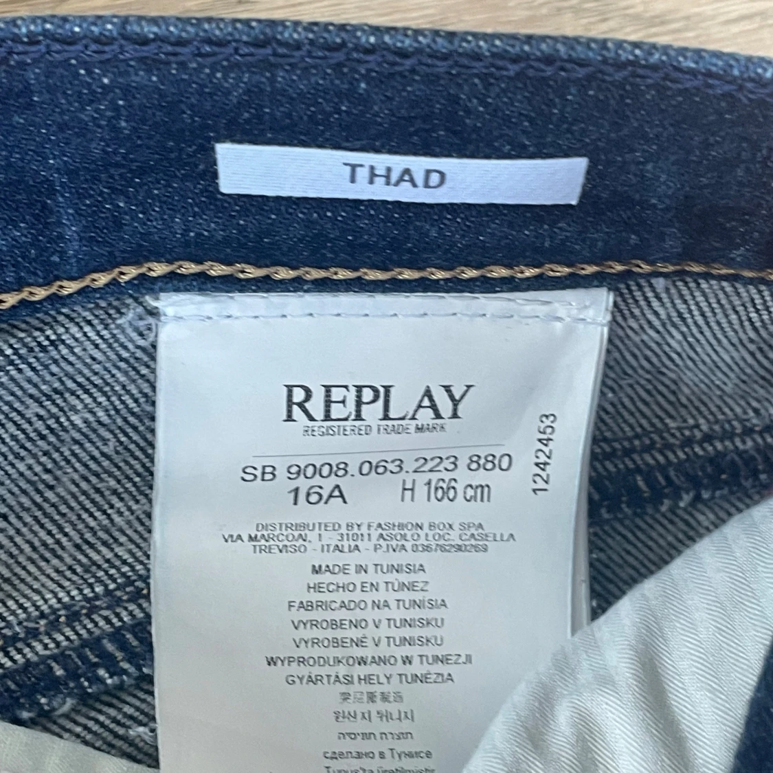 Replay jeans, Thad. Dom här jeansen har jag vuxit ur. Jag har haft dom i kanske 6 månader, inga hål eller missfärgningar existerar. Storlek står i tredje bilden.