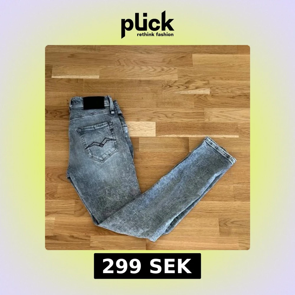 Grå jeans från replay i slim tapered fit med slitna detaljer och tvättad look. Klassisk femficksmodell med snygga sömmar på bakfickan. Strl: 29