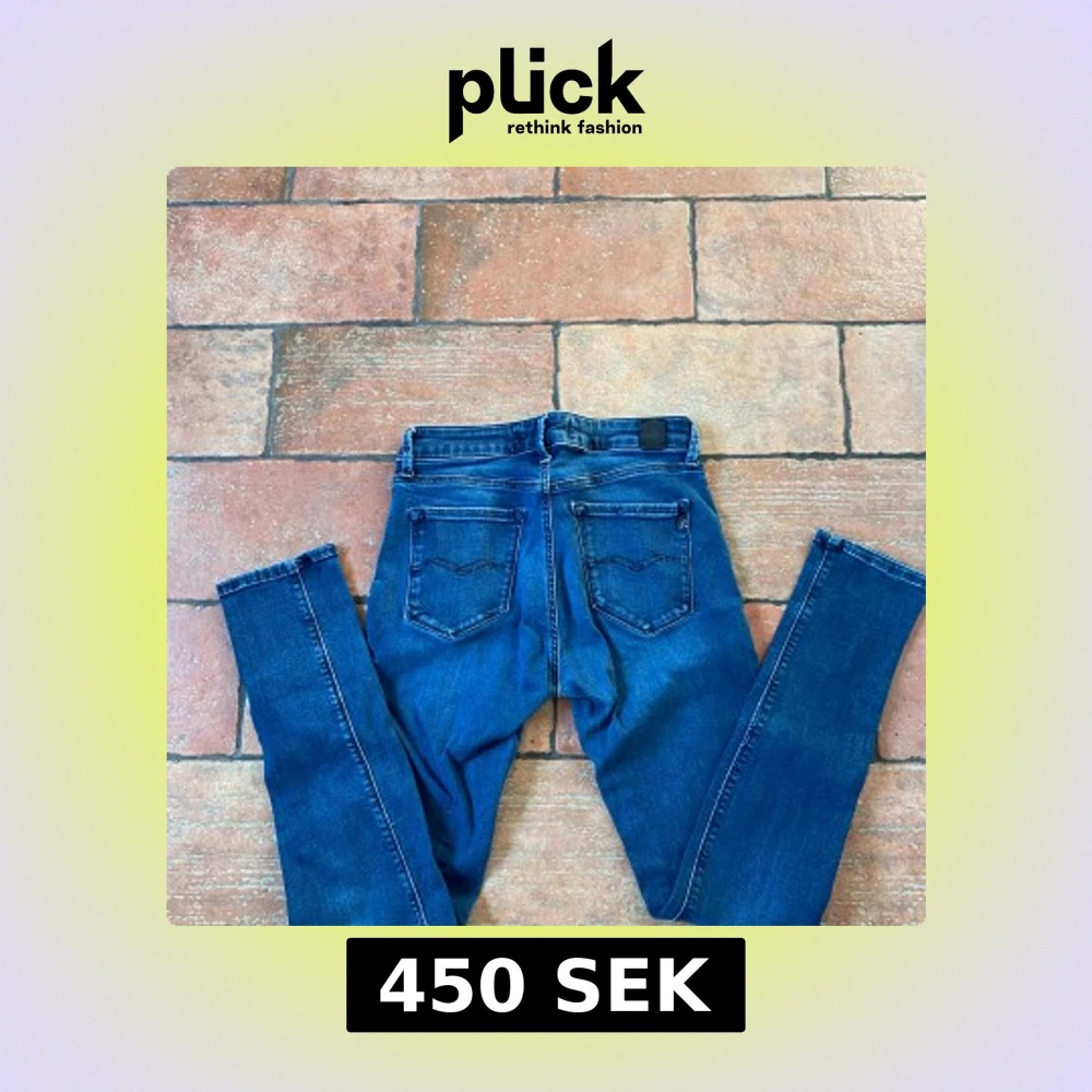 Säljer ett par Replay Anbass jeans i klassisk blå tvätt. Jeansen har bra passform, fickor och snygga detaljer på bakfickorna. Materialet är stretchigt jeans och de har en modern look med normal midja. Perfekta för dig som gillar en grish fitt.