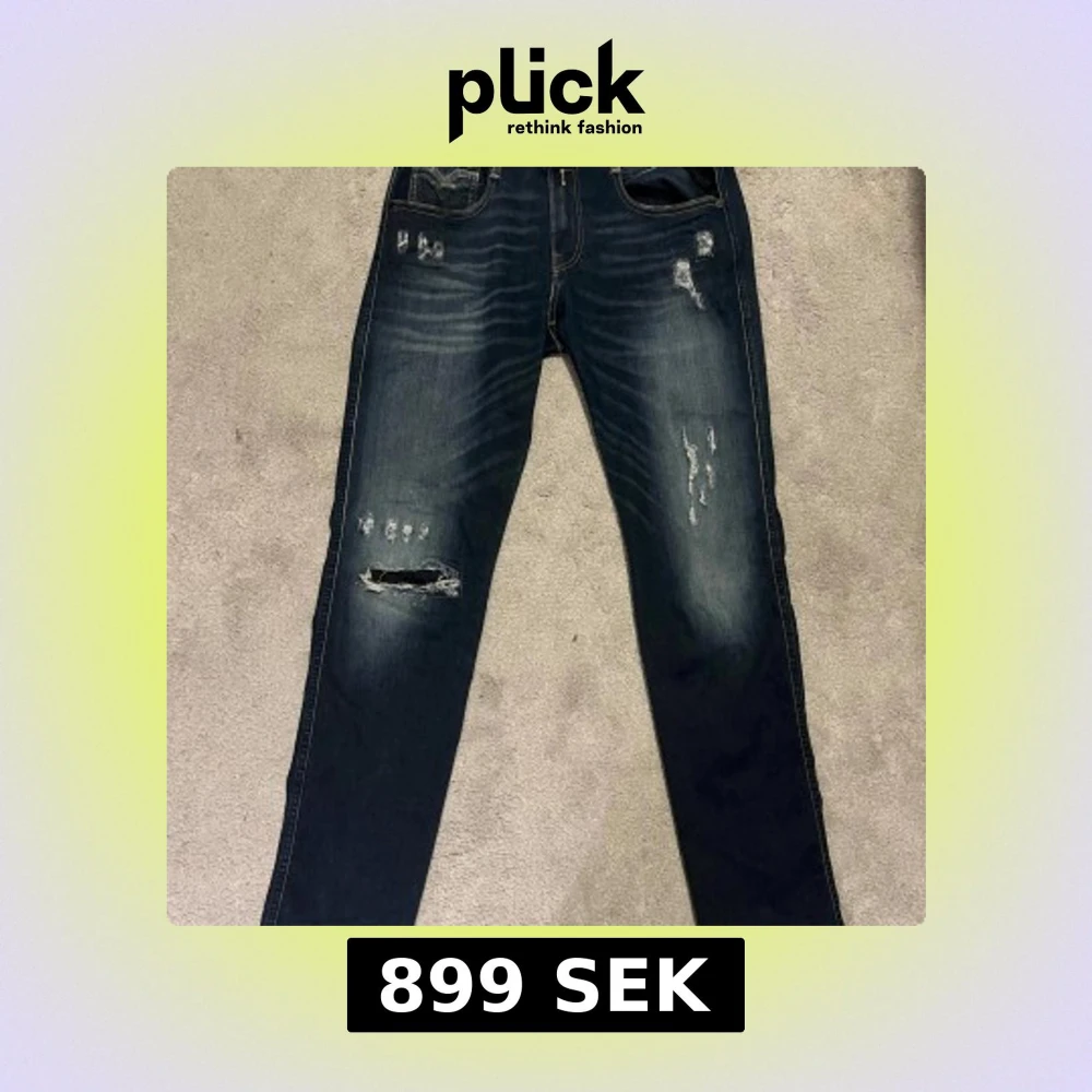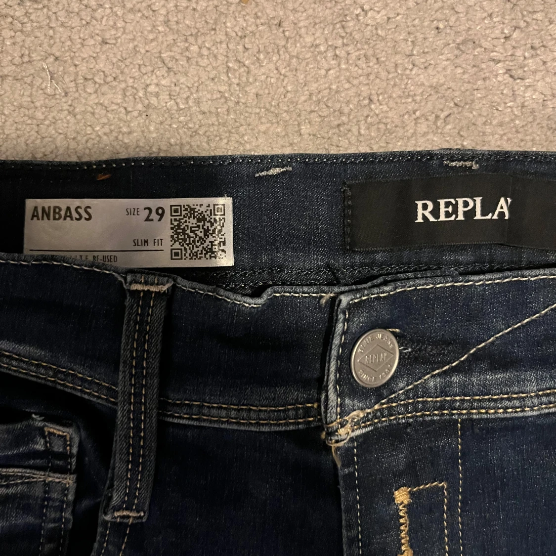 Snygga Replay Anbass jeans i mörkblå denim med slitna detaljer. De har en slim fit passform storlek W29 L32 och är tillverkade i ett stretchigt material för extra komfort. Perfekta för en trendig look. Den är slutsålt i Sverige vad jag sätt så extra Limited! Hör av er för mer detaljer!💌