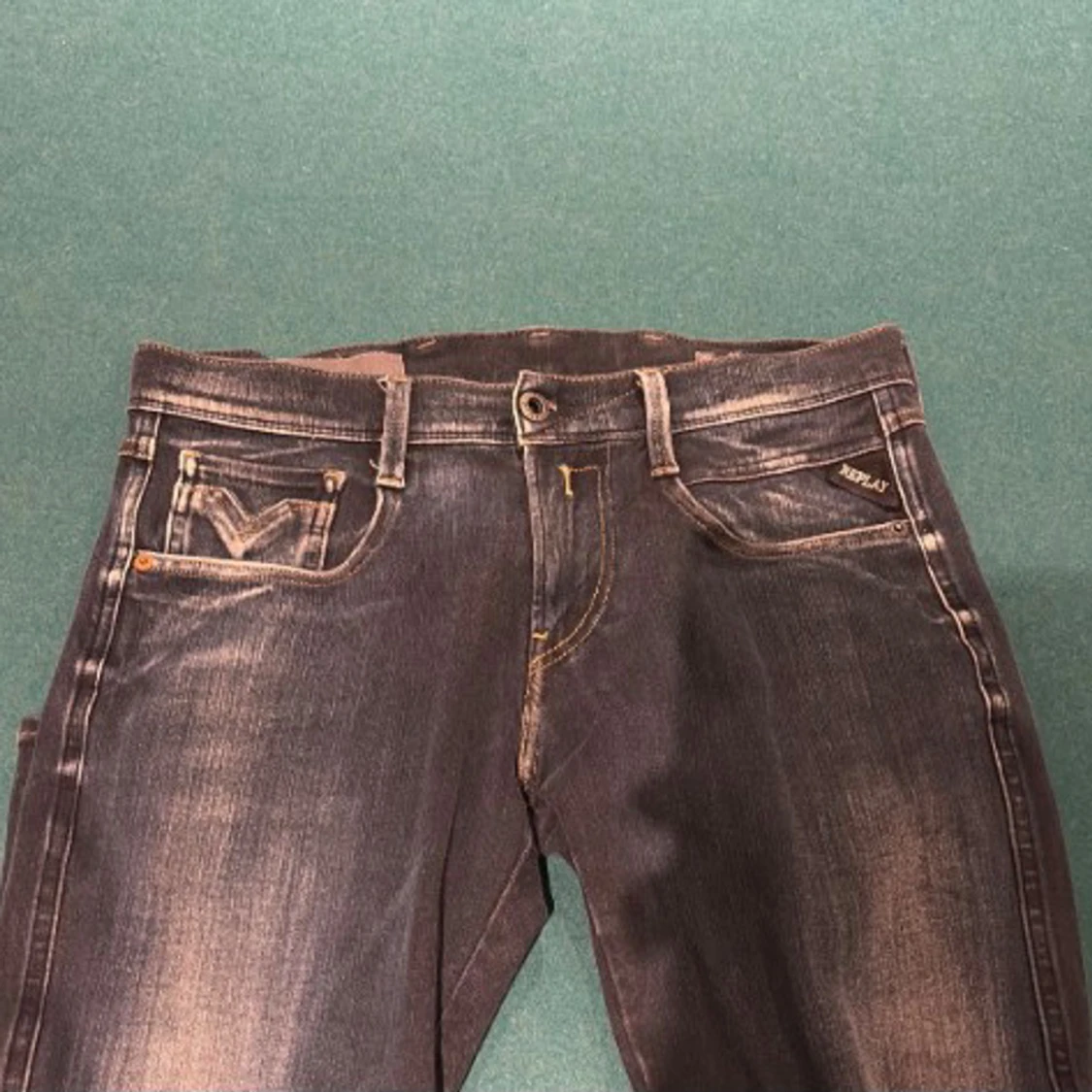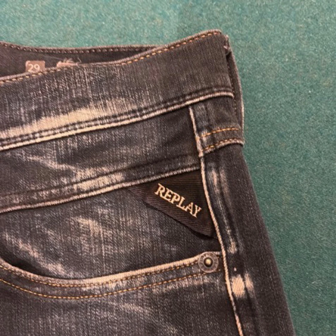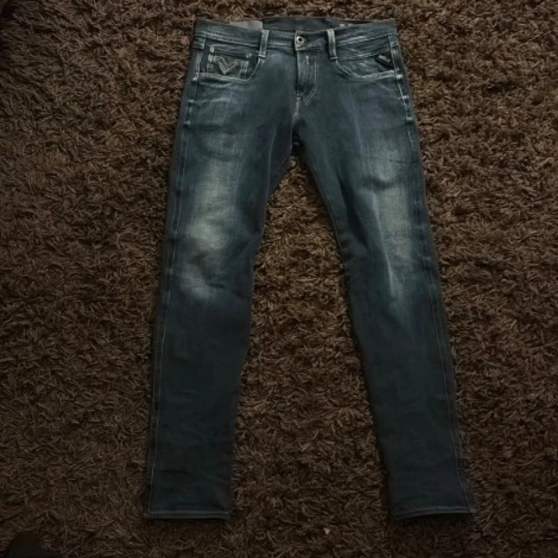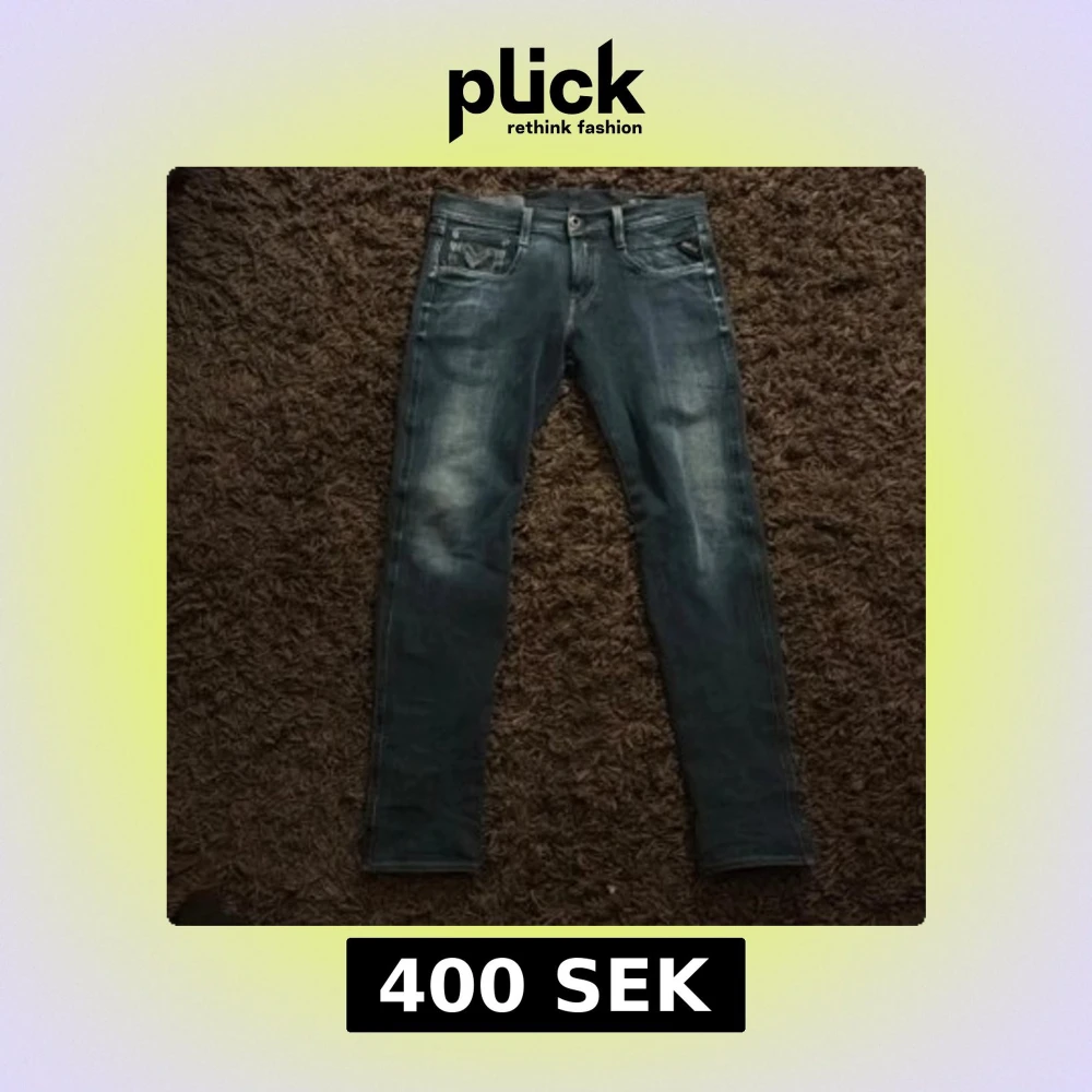 Säljer ett par Replay Anbass jeans i blå tvätt med snygg tvätt. Modellen är slim fit med klassiska fem fickor och dragkedjegylf. Jeansen har Replay-logga på fickan och är tillverkade i stretchig denim för en bekväm passform.
