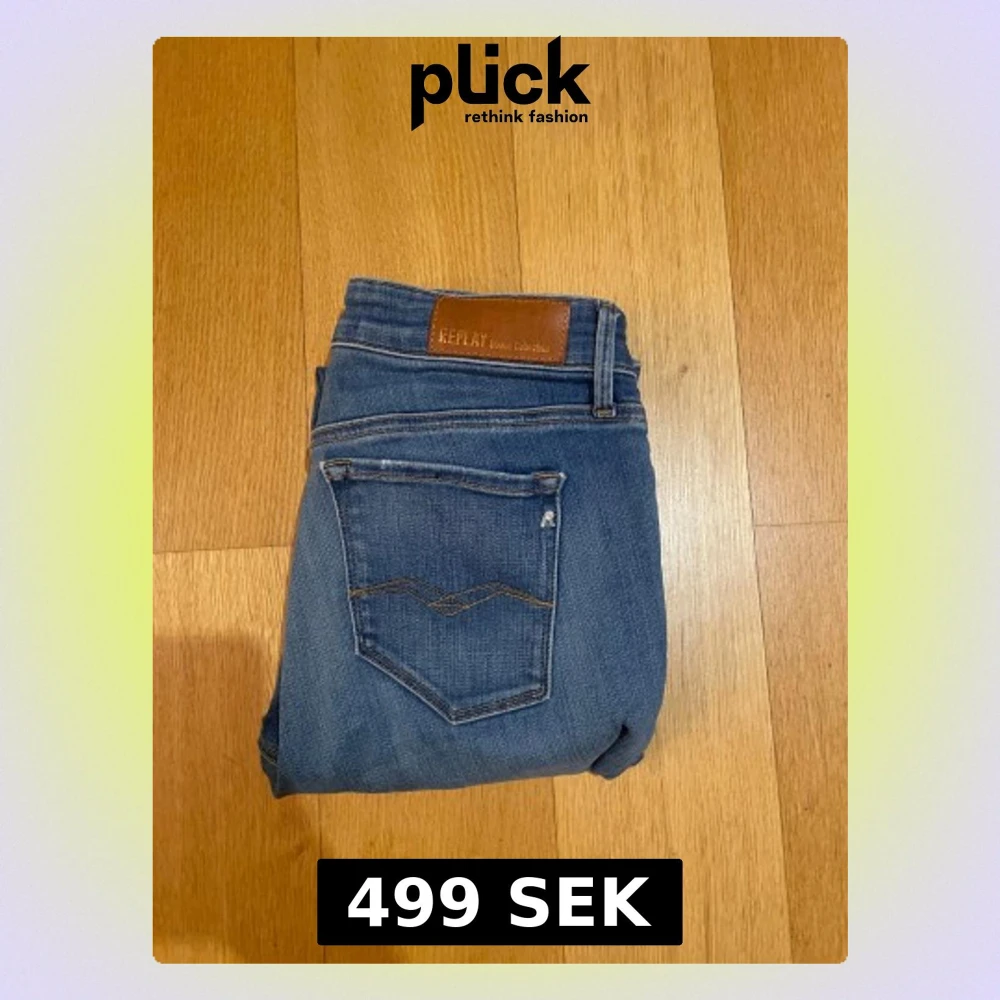 Snygga blå jeans från Replay med klassisk femficksdesign och brunt läderpatch bak i midjan. Modellen är skinny med smal passform och raka ben. Jeansen har subtila slitningar och är tillverkade i mjukt jeansmaterial med stretch för extra komfort.