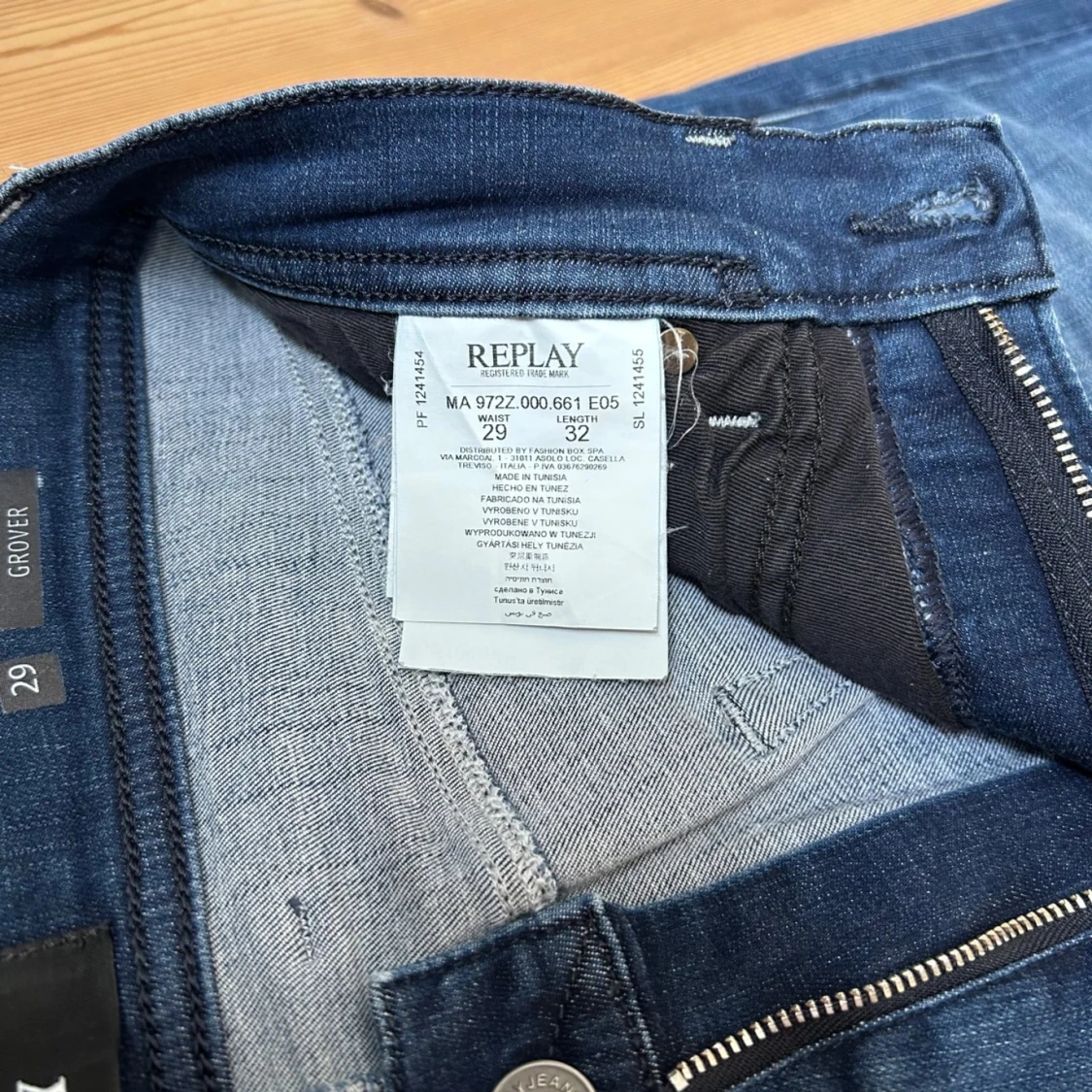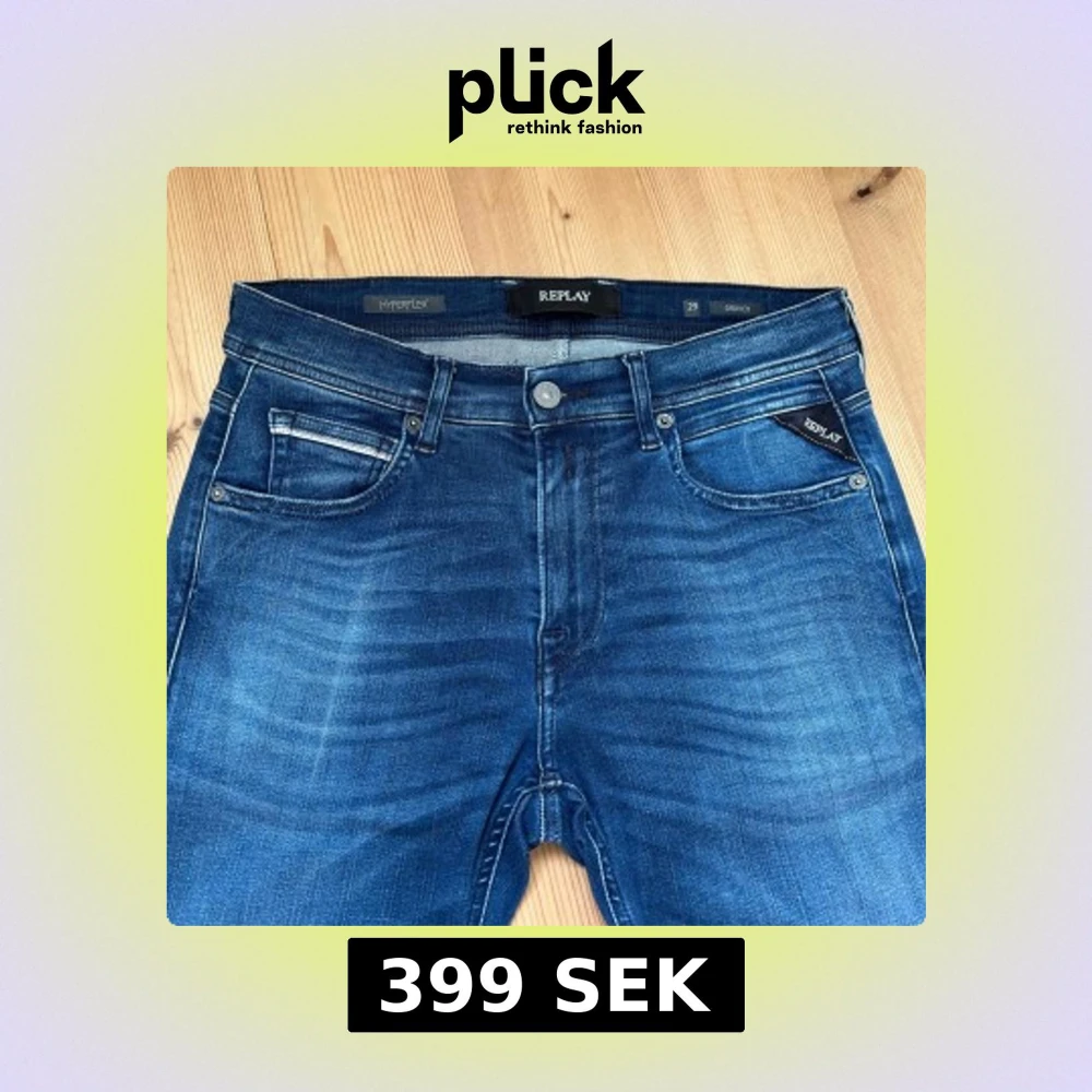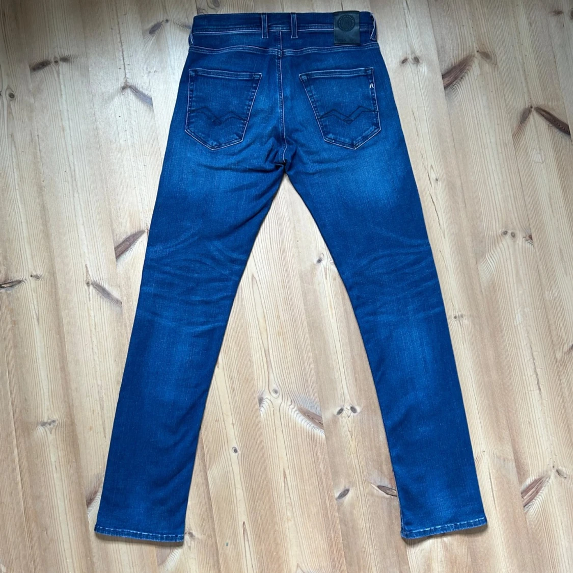 Ett par mörkblåa Replay Grover Hyperflex i mycket bra skick, inga defekter alls.🤩 Storleken är W29 L32. Tveka inte på att höra av dig vid funderingar, eller om du vill ha mått eller fler bilder!⭐️