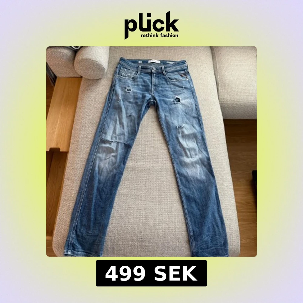Snygga blå jeans från Replay med slitna detaljer och en klassisk femficksdesign. De har en dragkedja och knapp framtill. Perfekta för en avslappnad stil.
