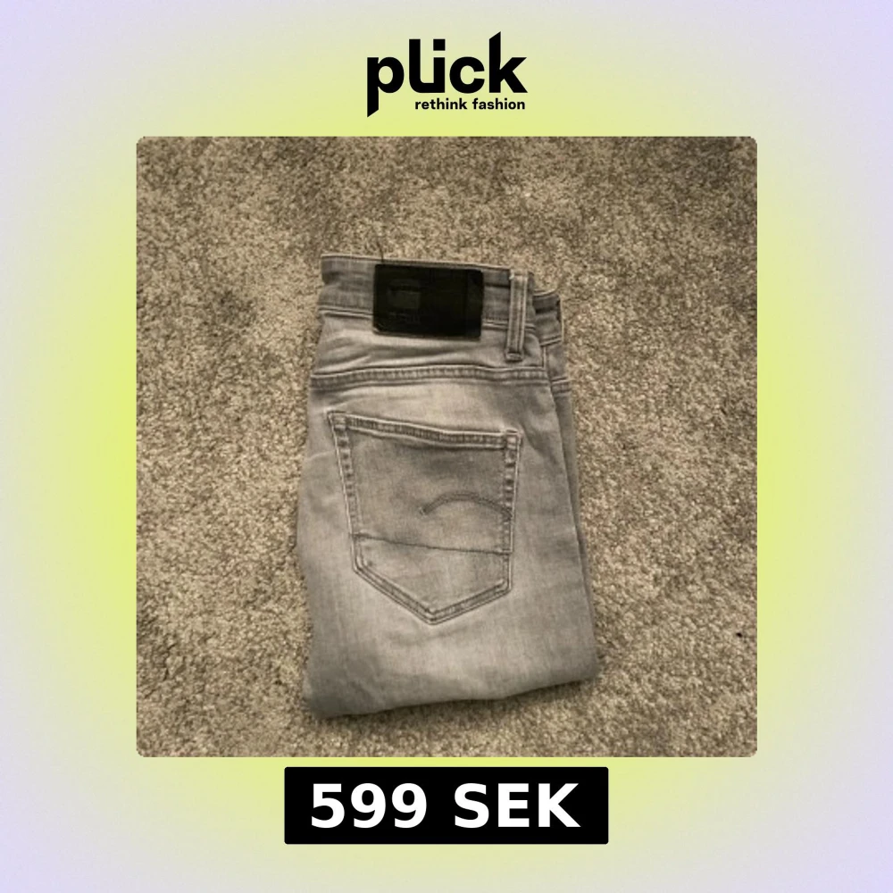 Snygga ljusgrå jeans från G-star raw med klassisk femficksdesign och diskret Gstar-logga på bakfickan. Jeansen har ett smalt snitt och är tillverkade i mjukt jeanstyg med stretch. Ett litet hål på knät men går att laga väldigt enkelt och billigt. Otroligt lika dondups i deignen. W29 L30